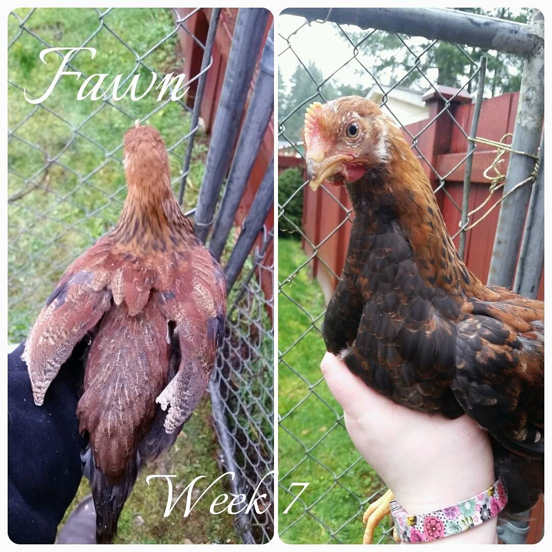 I hate to break this to you, but I'm pretty darn sure Fawn is a cockerel also. A profile shot of the bird standing naturally would help confirm.