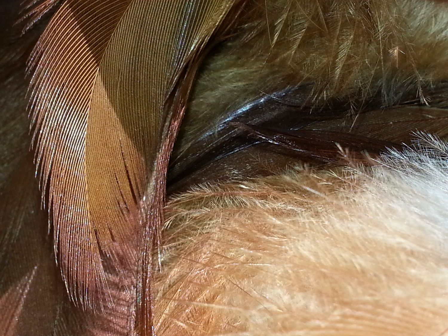 I believe that Echo is a cockerel but my husband insists that she is his girl (pullet). So please help me figure out if Echo is a cockerel or a pullet and what possible breed he/she could be (the down feathers are a medium brown color as opposed to my bigger PR/RIR's whose down feathers are beige).
