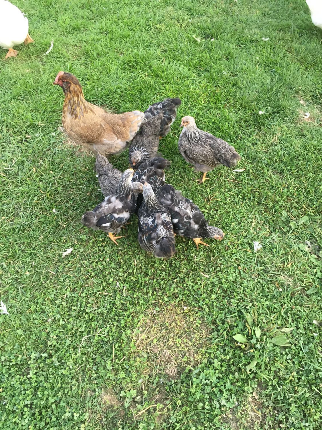 Of the 10 the broody Altserier hen set 8 hatch 7 survived.