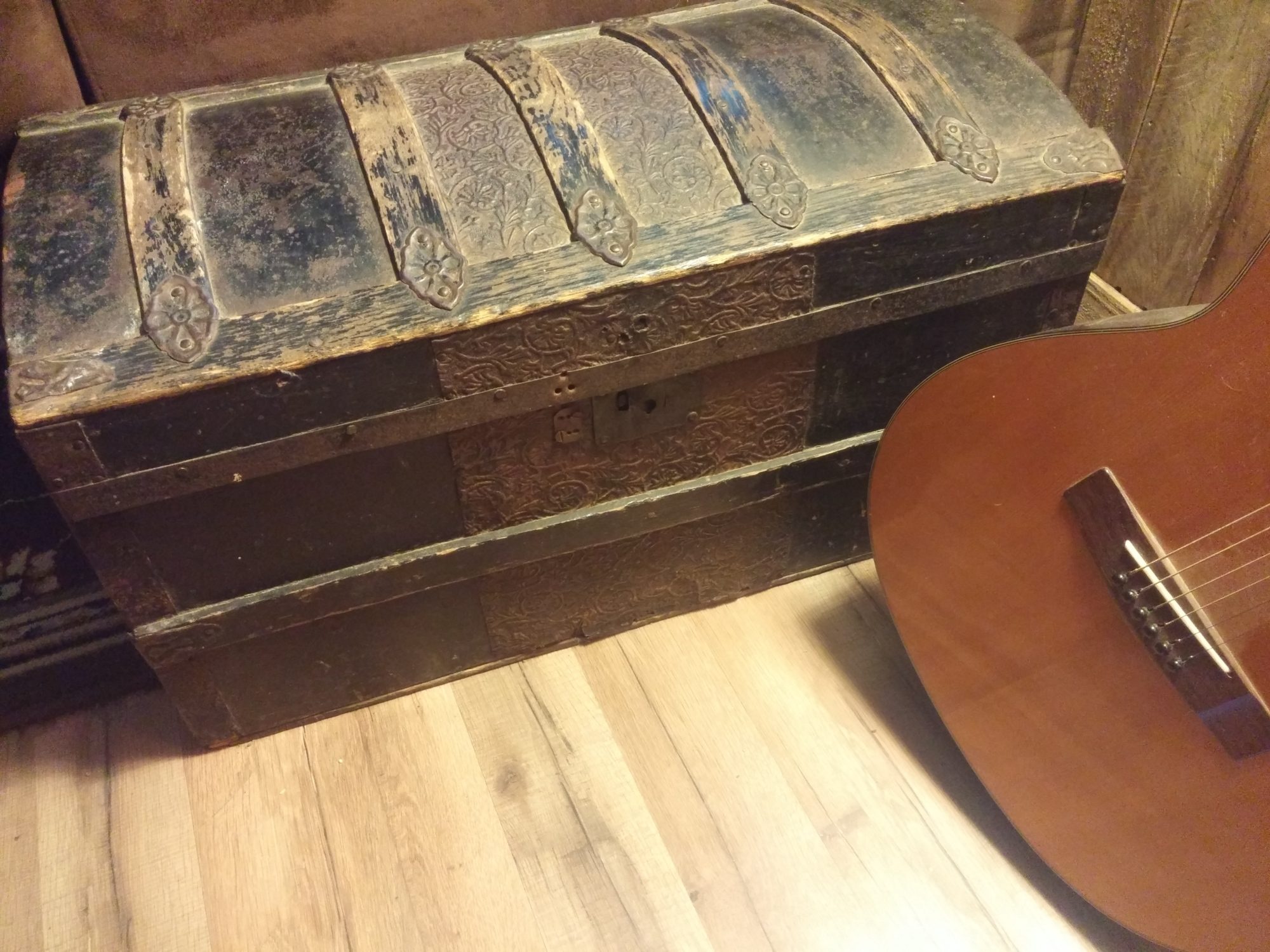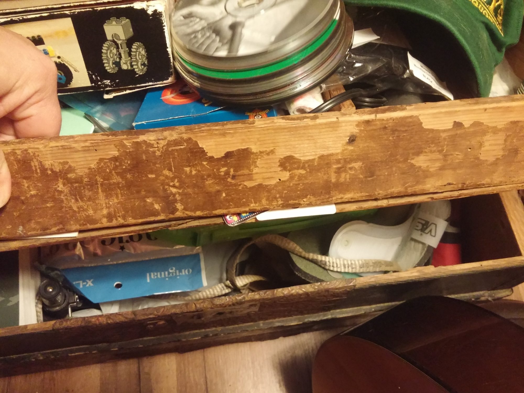 Mine didn't have the trays, and it had cardboard lining the inside of the lid that had come unglued & fallen down, but the exterior is identical. Had Grandpa's Army uniform & a slew of old post cards, a lot of them to Grandma, and his journal. Kind of hated to let it go, but I wanted our son to have it when we're gone, anyway, so it was kind of bitter-sweet. He'd have been 128 this past July 6th.