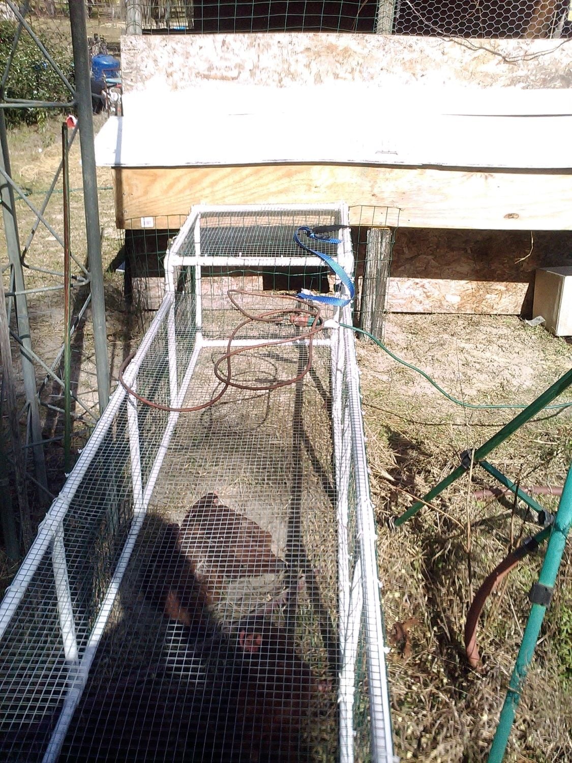 Well, I had a restless night (worrying about how to pull off the chicken rearrangements), and finally got up at 5am and pulled the GNH girls off the roosts and put them in the chicken hospital to wait. Then I pulled the Speckled Sussex off the roost (and away from poor Tank) and put them in a crate in the car. Had some coffee and then delivered the SS to a friend who will spoil them silly. When I came home, poor Tank was wandering around wondering where his girls had gone, so I introduced his new girls, the three GNH. As gentlemanly as he can be normally, he was a little too excited to be polite and there was a bit of chasing. It has settled down a bit, but the poor guy alternates between chasing/attempting to mount and staring off into space, as if to ask, "Do you mean I have to figure out this girl stuff all over again?!" Poor fella...