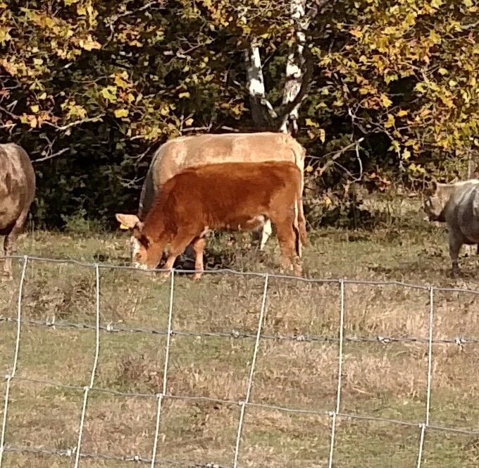 Thus I had to get enough money together to buy a weanling steer for the freezer next fall. I have not named him yet, but it will be something like Tim (turn into meat). He is OK. Angus Hereford cross, though personally I prefer CharAngus they get better butts and thus more meat.