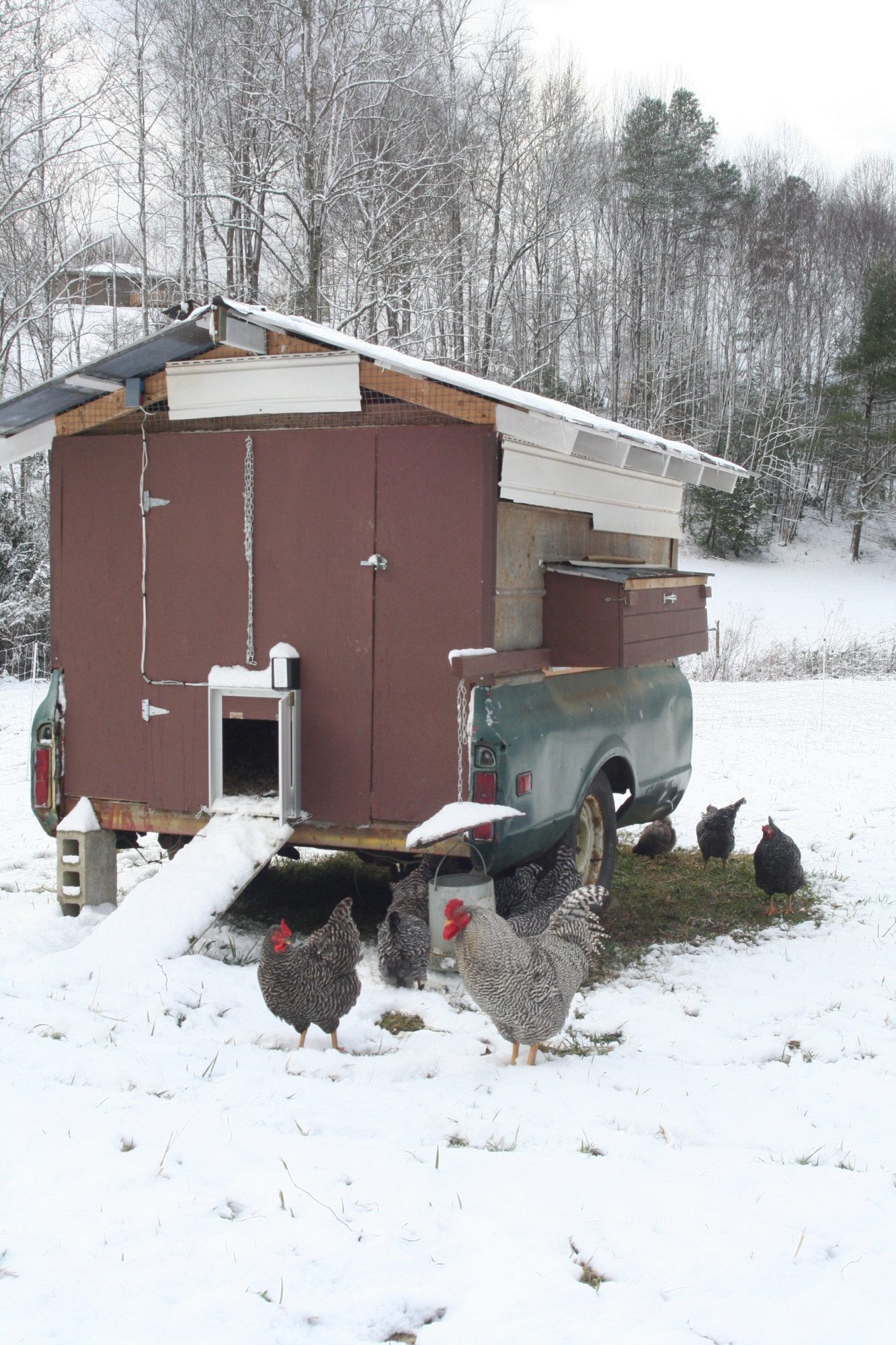 I had an old trailer that was the back of a pickup truck. I wanted to move my chickens around the pasture so made the coop on top of it. I move it with my little tractor about once a week and the chicks have fresh grass and bugs to eat. I use Electronet fencing around the coop to keep them in and predators out.