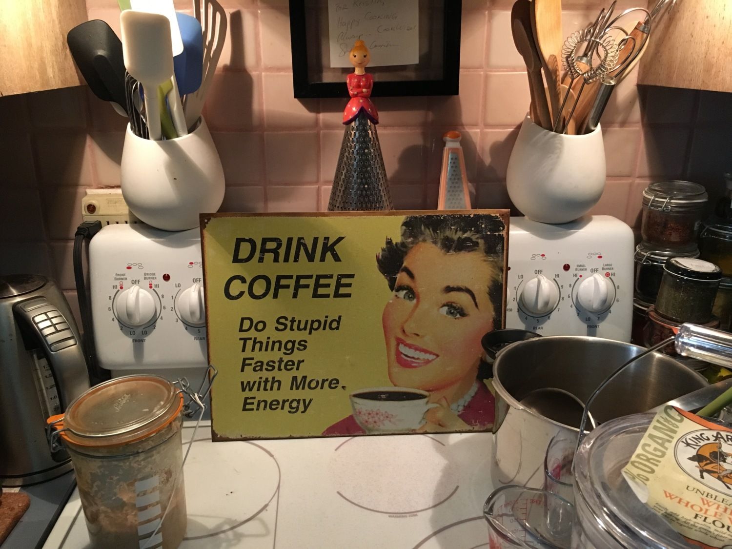 I have this metal sign in my kitchen! (It was a gift). Here's a photo (I moved it to where you can see it better):