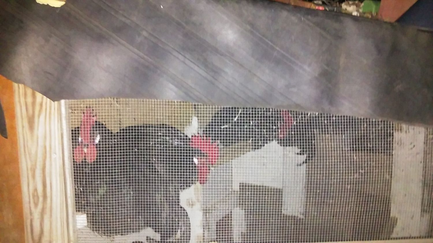 Was she looking for fresh air?@casportpony The hen that I cleaned her butt and gave ivermectin to on Sunday is not up on the roost, but down by the hardware cloth opening on the floor of the coop. I tried to put her up after taking a couple of photos for you, but she went back to where she had been. I am worried especially since she is one of my four breeders for the spring.