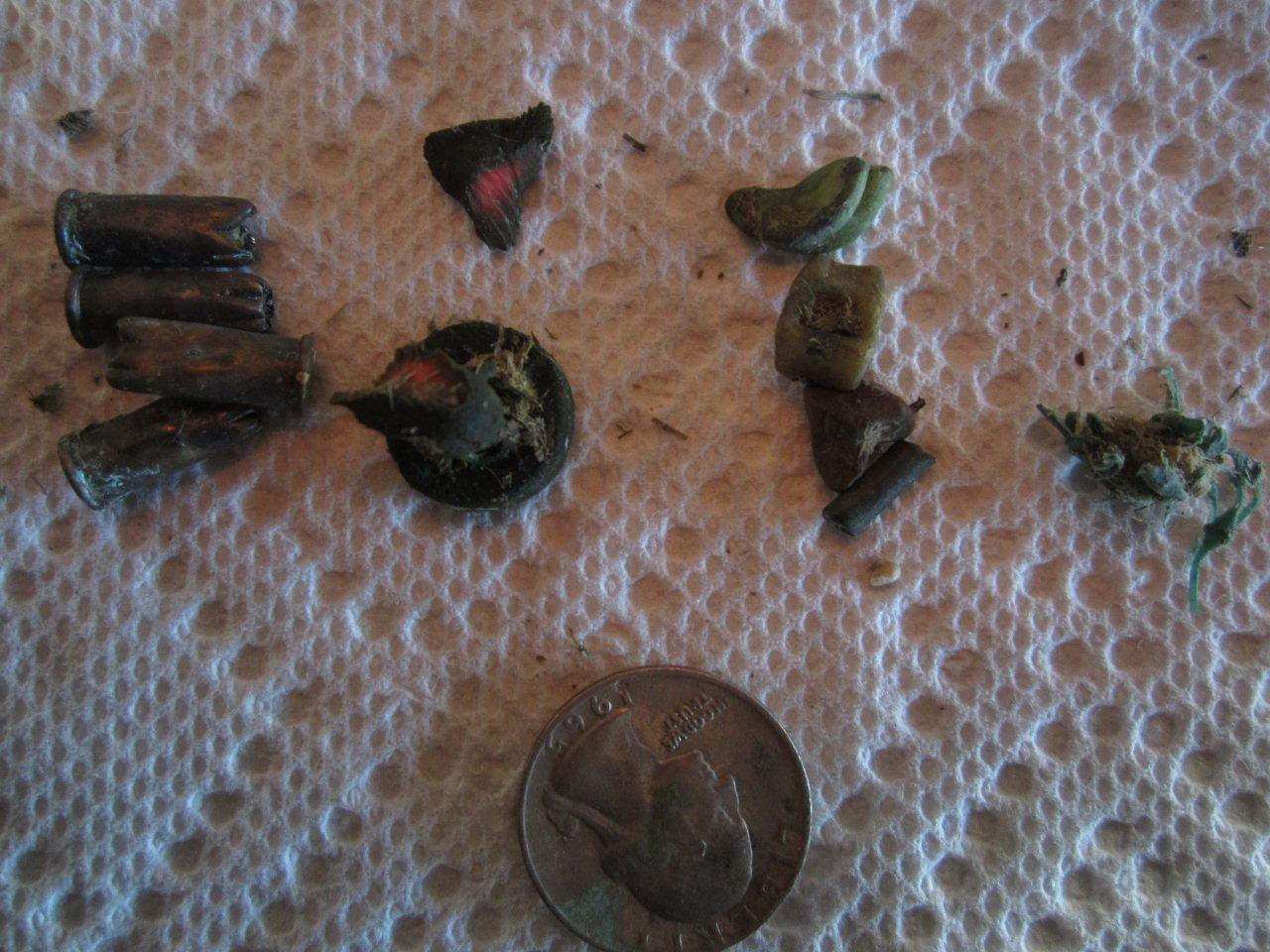 [COLOR=333333]Here is what I found in the gizzard of one of the peacocks that I did the necropsy on (from the one of the peas in this thread, not mine!https://www.backyardchickens.com/t/834394/updated-with-very-graphic-pictures-probable-blackhead-five-miles-from-my-place).[/COLOR] [COLOR=333333][/COLOR] [COLOR=333333]
