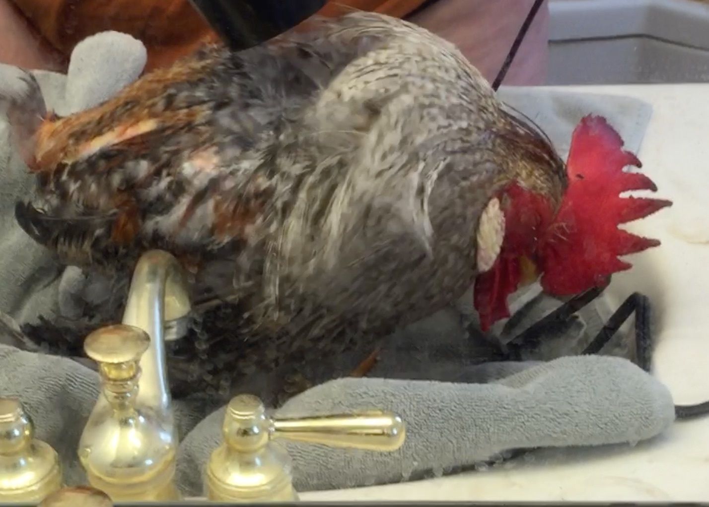Depending on how her web heals, maybe.Sooooo.... House duck? When Dumbledore's back end and neck was bitten/chewed by those dogs, when I took him to the vet, she said that, once he was stable, the best thing I could do was to give him warm water baths at least once a day (plain water) - she called it his hydrotherapy and said his wounds would heal a lot faster with it. He LOVED it... Well, ok, he didn't really love the baths, but he really loved being blown dried, it made him doze off.![]()