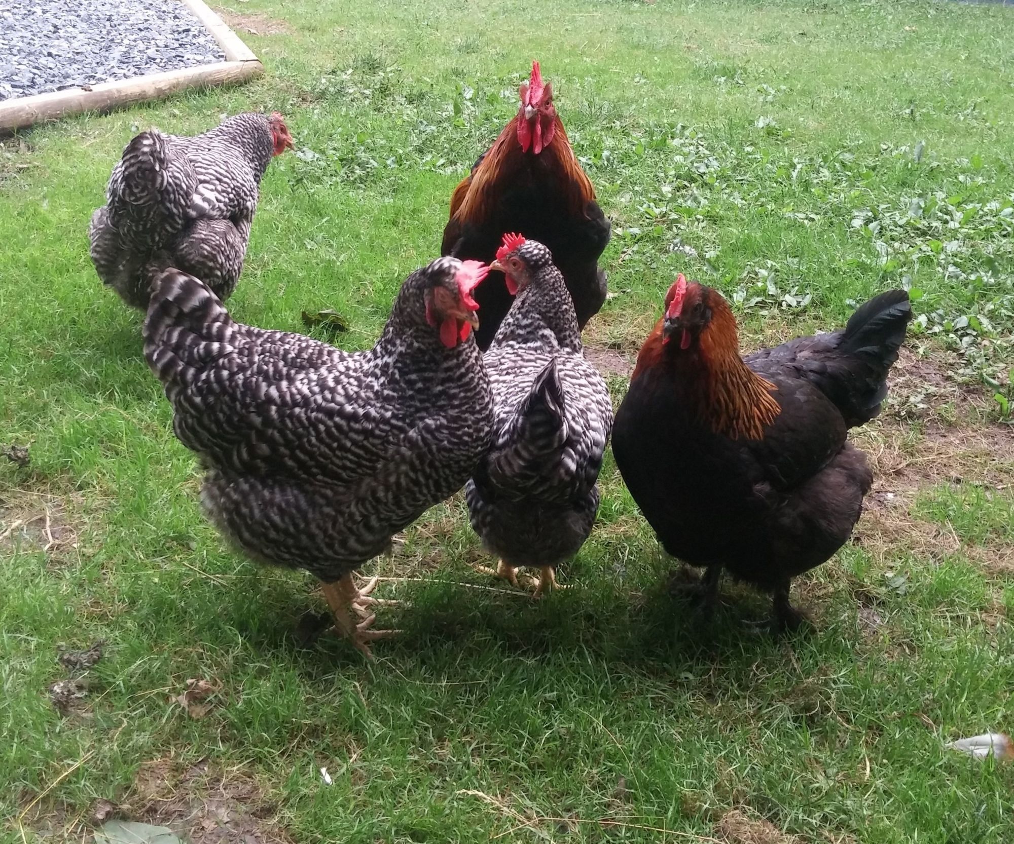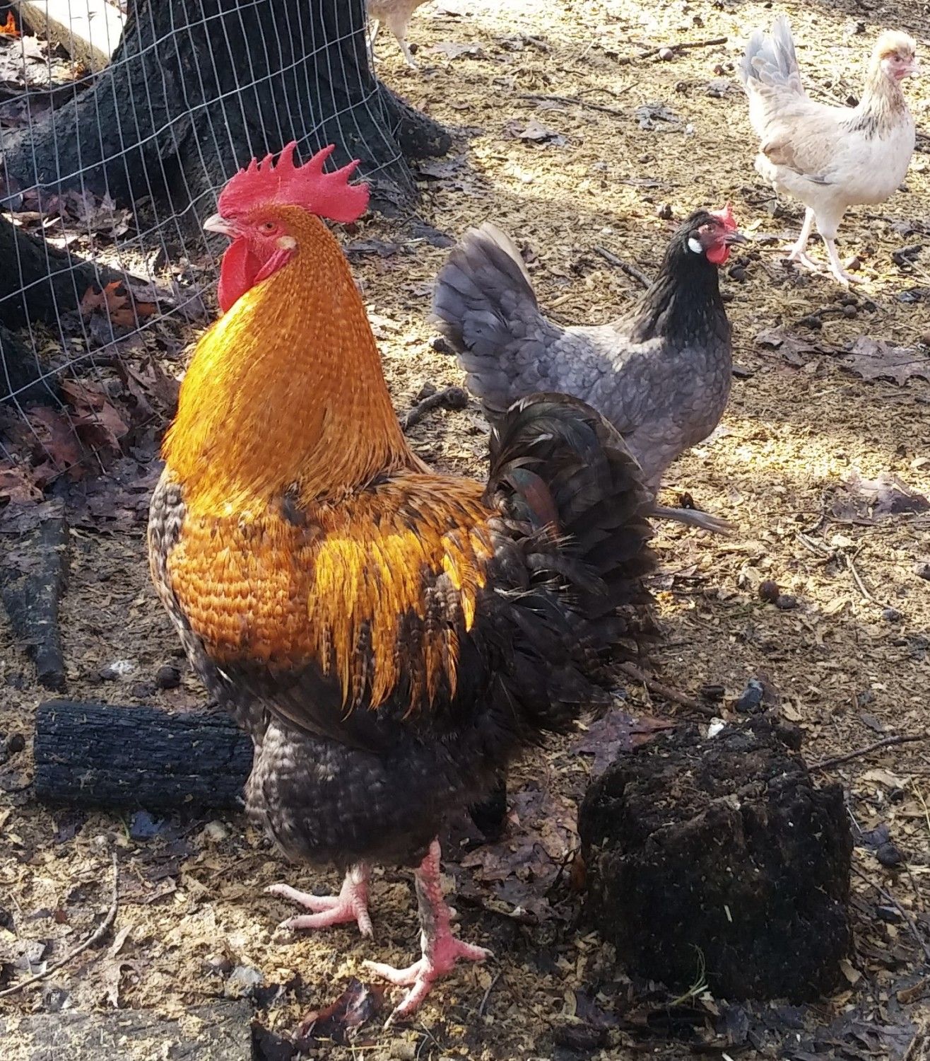 BCM roo over Cuckoo marans OE, Blue OE marans, and there is one CBR project OE in there under him as well. this guy over hens....