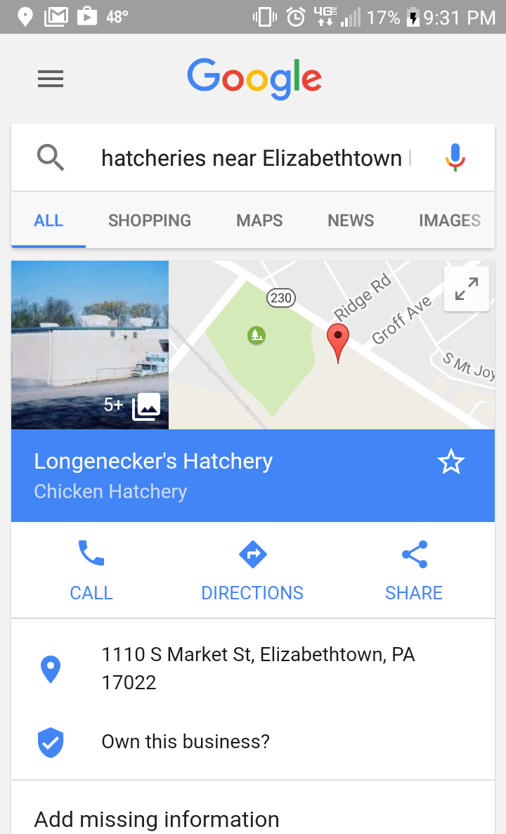 You hear anything about 1,000 chicks being lost today in south-central PA?