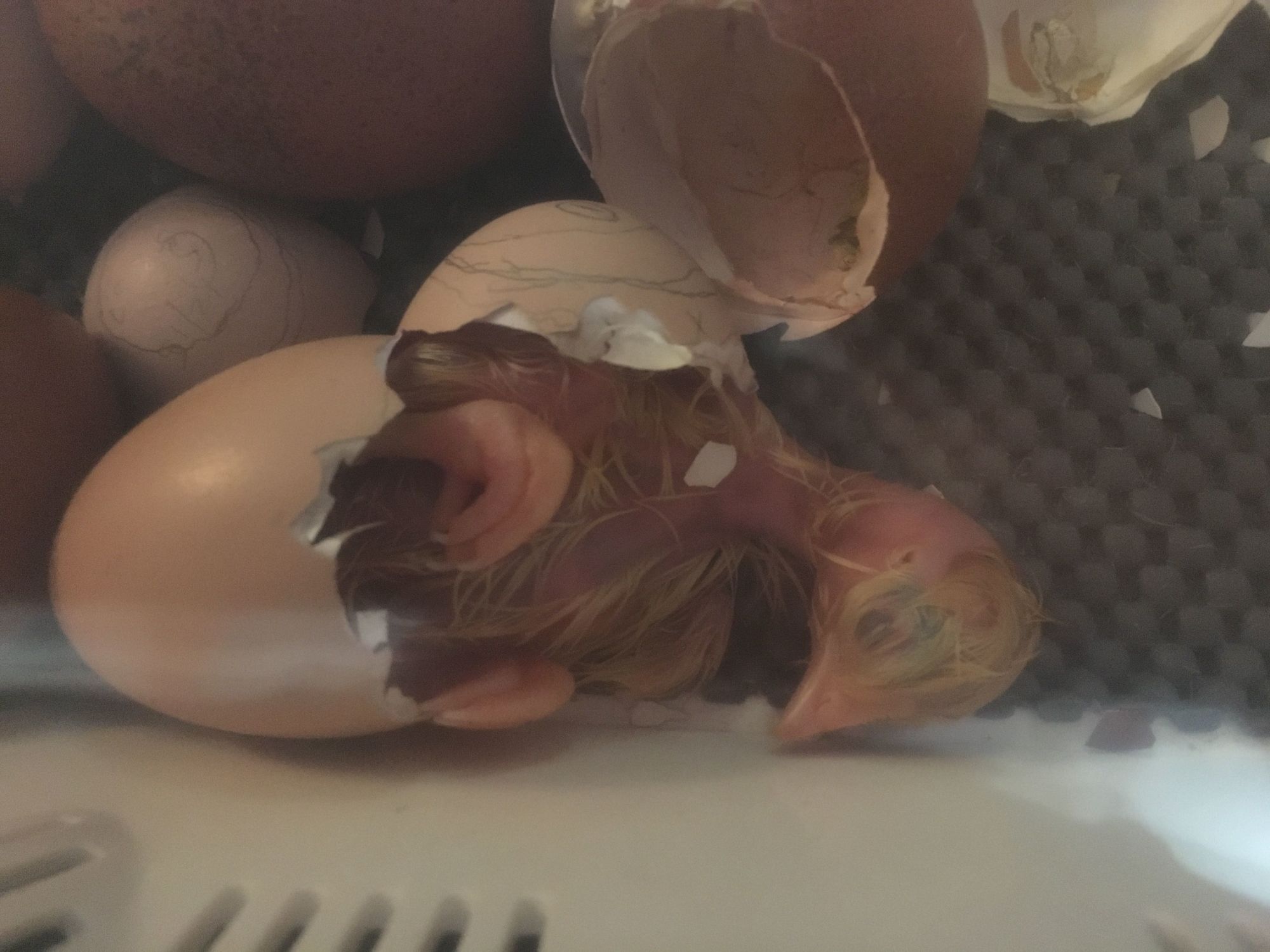 Well - all 10 of the NNs hatched, and o the 6 Marans cross eggs that I was convinced wouldn't make it, 4 hatched (early, even). All chicks healthy little pooping machines!!!!![]()