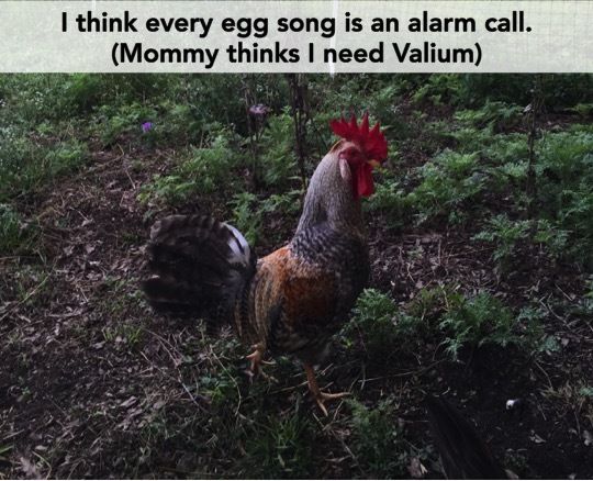 Quote:Smart birds are a plus. I have 7 cockerels/roosters, and I have found that they will crow about 1-2 hours before sunrise briefly, then stop, then sometimes crow when it gets light. (I have no night time crowers.) Except the three GNH bachelors (who will get pullets this fall), the other three roosters and one cockerel are "heads of households". I've noticed that the older the rooster gets, the less likely they are to crow a lot in the morning, or for that matter, in the day time (unless disturbed). It's almost like I can imagine them saying to the young ones "Shut up already, we get the point!" Also, the ones with families have their hands full with guarding and breeding their girls, and don't spend as much time yelling as the bachelors...![]()