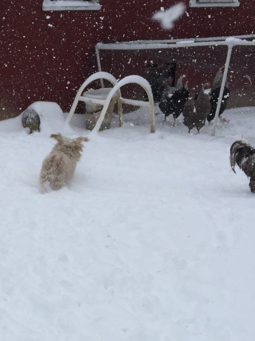 The dog was chasing the birds around. He must have figured they needed to warm up!