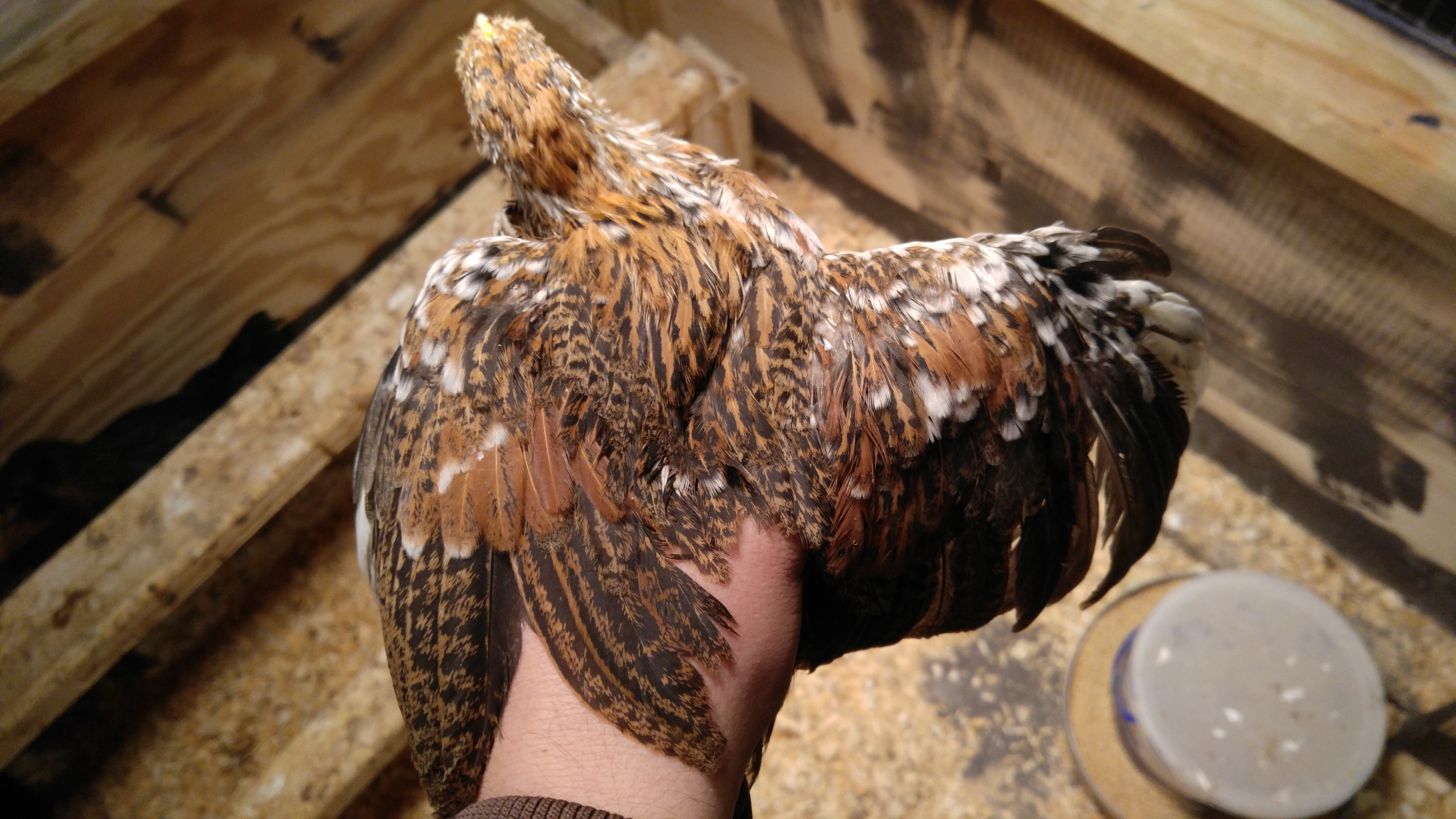 It's so hard to get pics of the Serama babies so I figured I'd snap one while broody mom decided to get up and have breakfast!