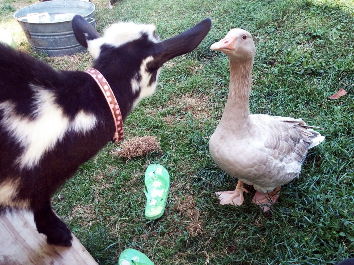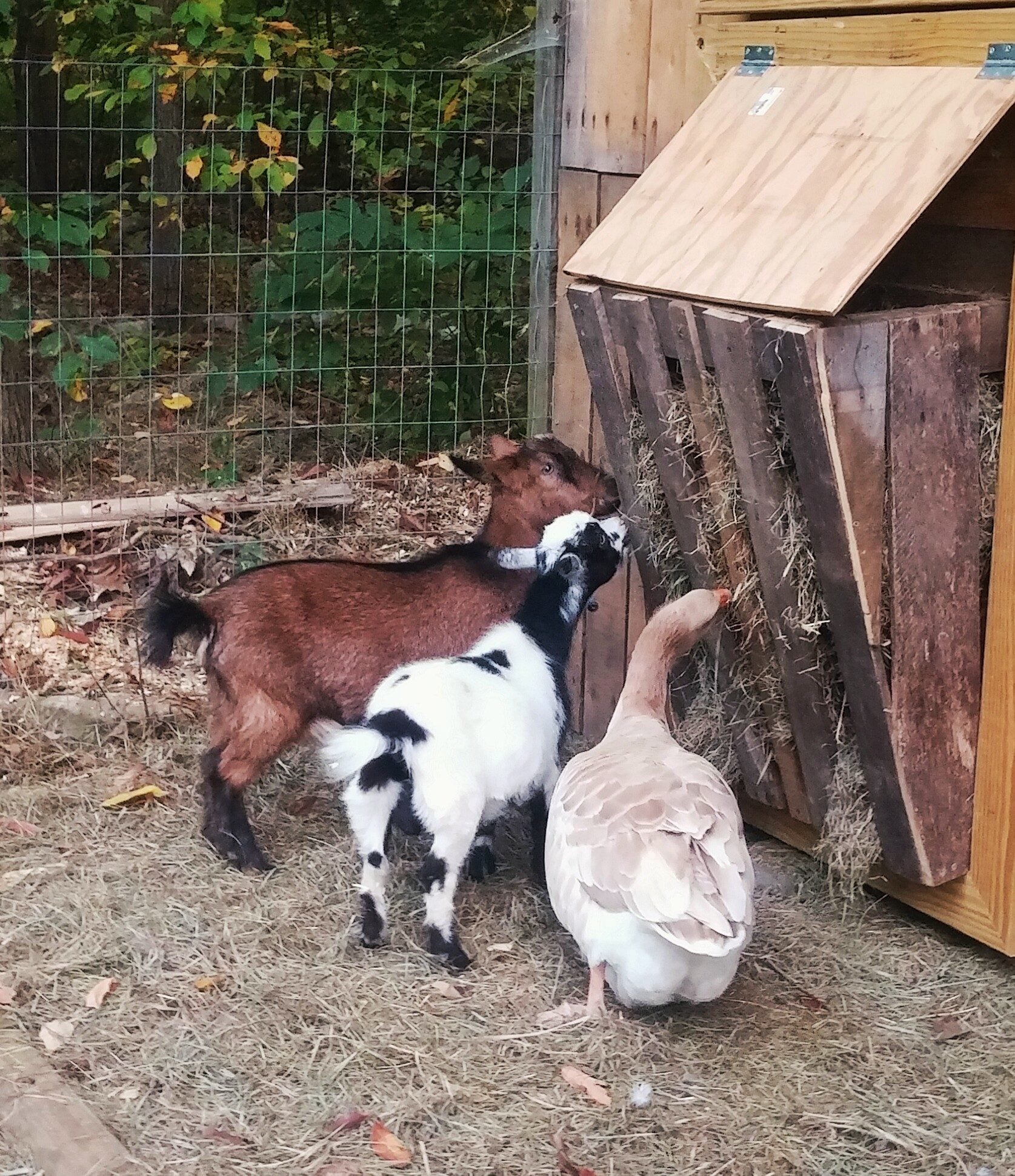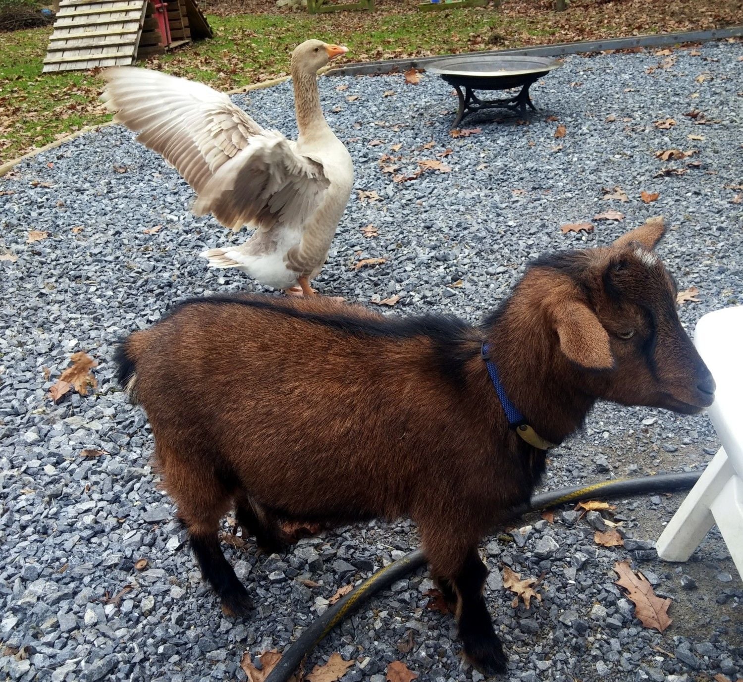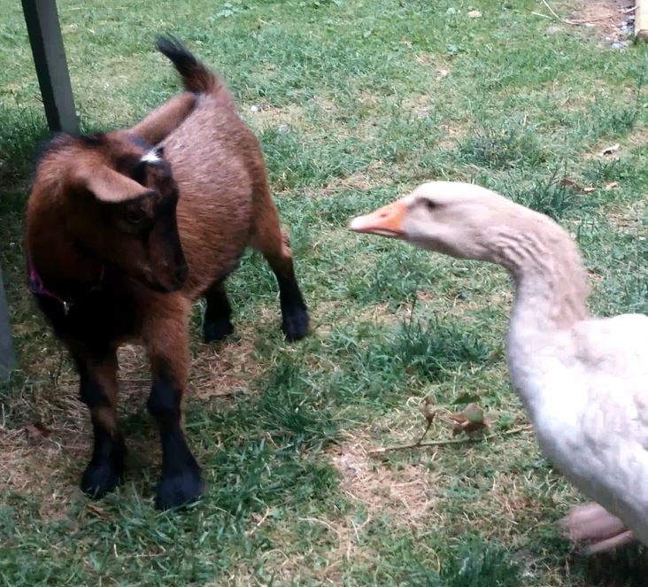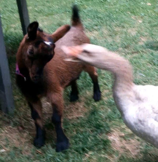 Quote: funny the dog got into their area and gooserz scared her away, she is now (the dog) scared of geese AND goats ha!!