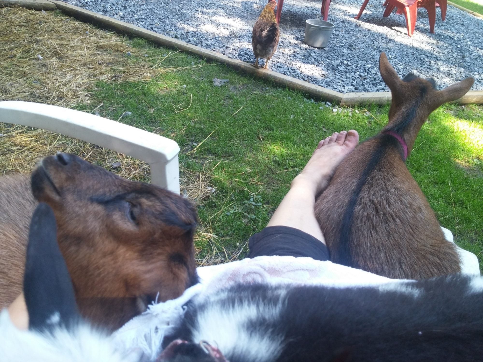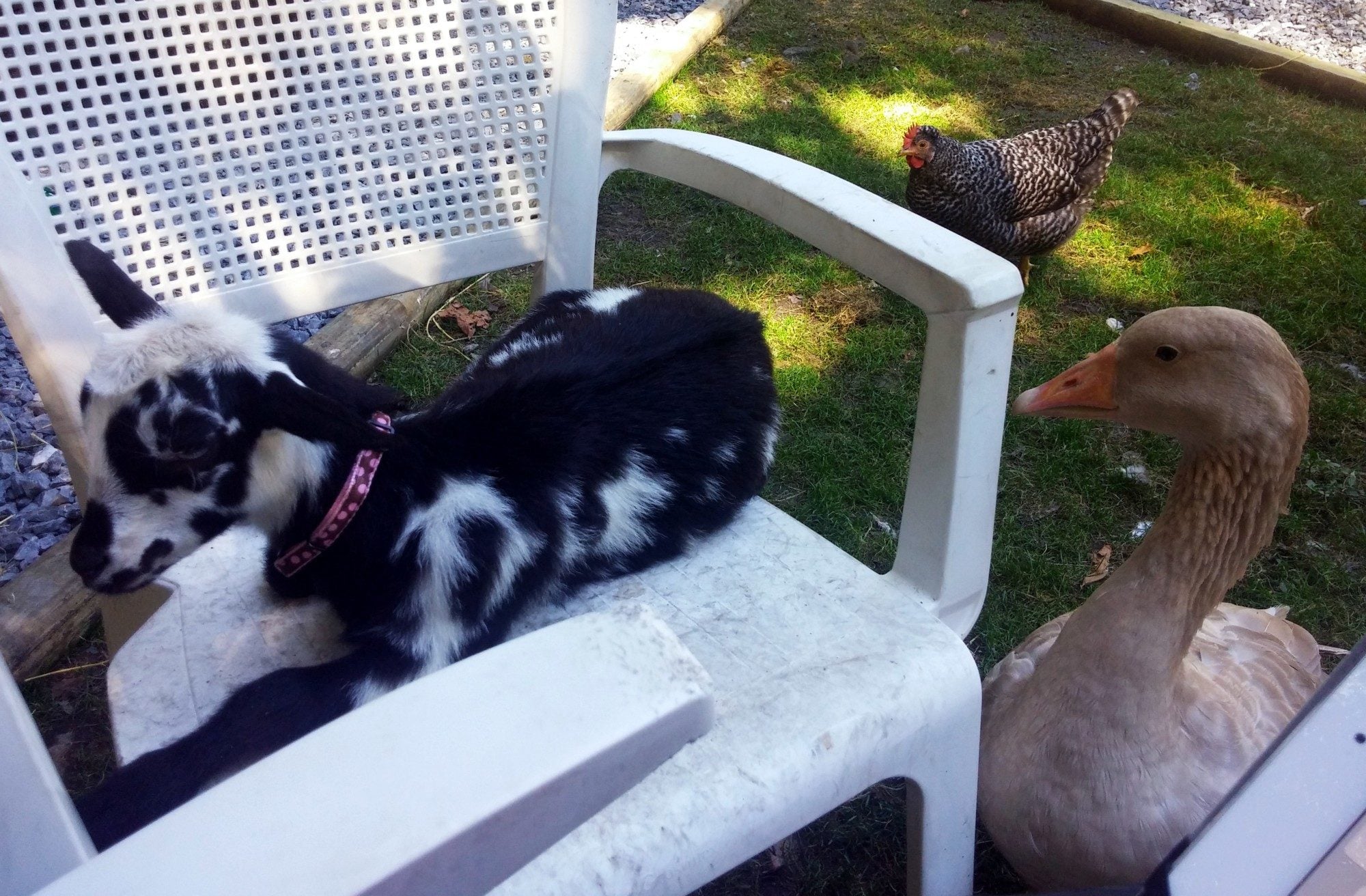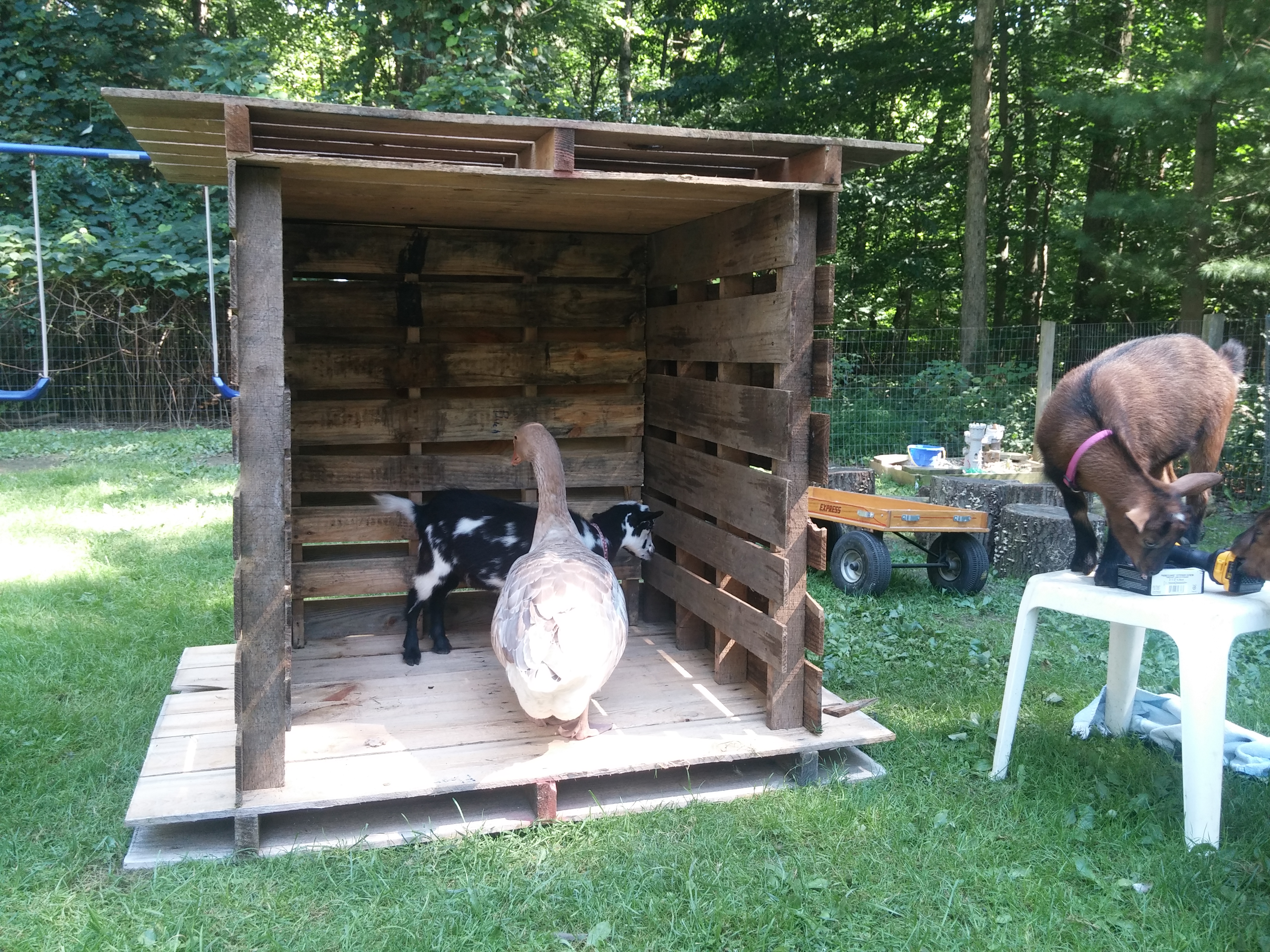 Quote: funny the dog got into their area and gooserz scared her away, she is now (the dog) scared of geese AND goats ha!!