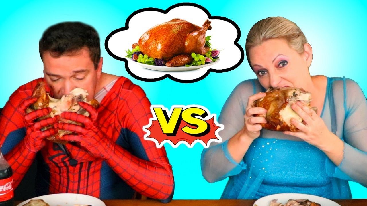1.... Why would someone try and eat a whole chicken at one time? 2.... Why in an ELSA COSTUME, for goodness sakes!?