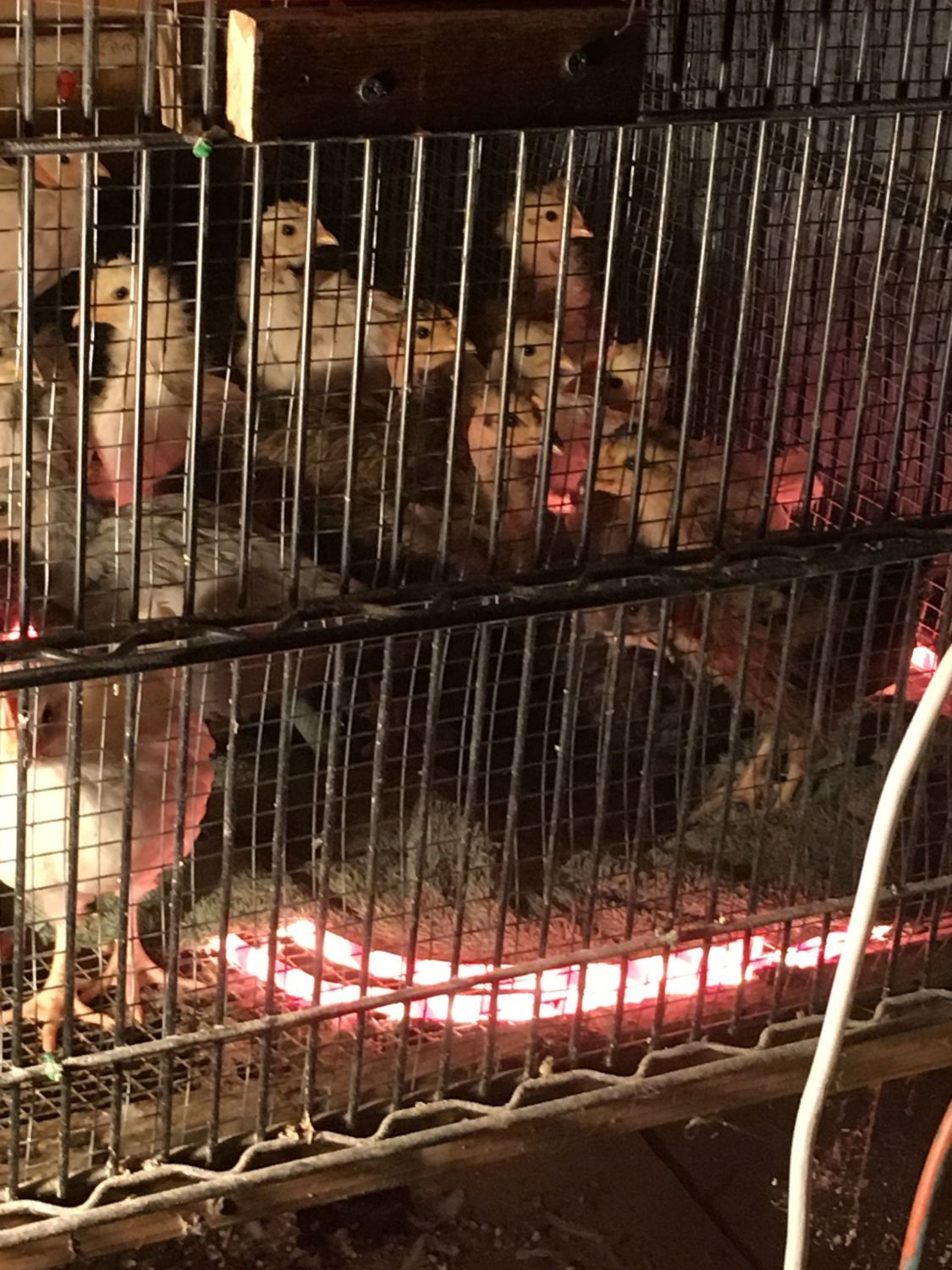 I was just about to leave for church this night, when I noticed the bulb on the quail had blown. I reluctantly put the MHP in their brooder, which I had not done in the first place due to their fragility and stupidity, and planned to find a bulb and switch them back over ASAP.
