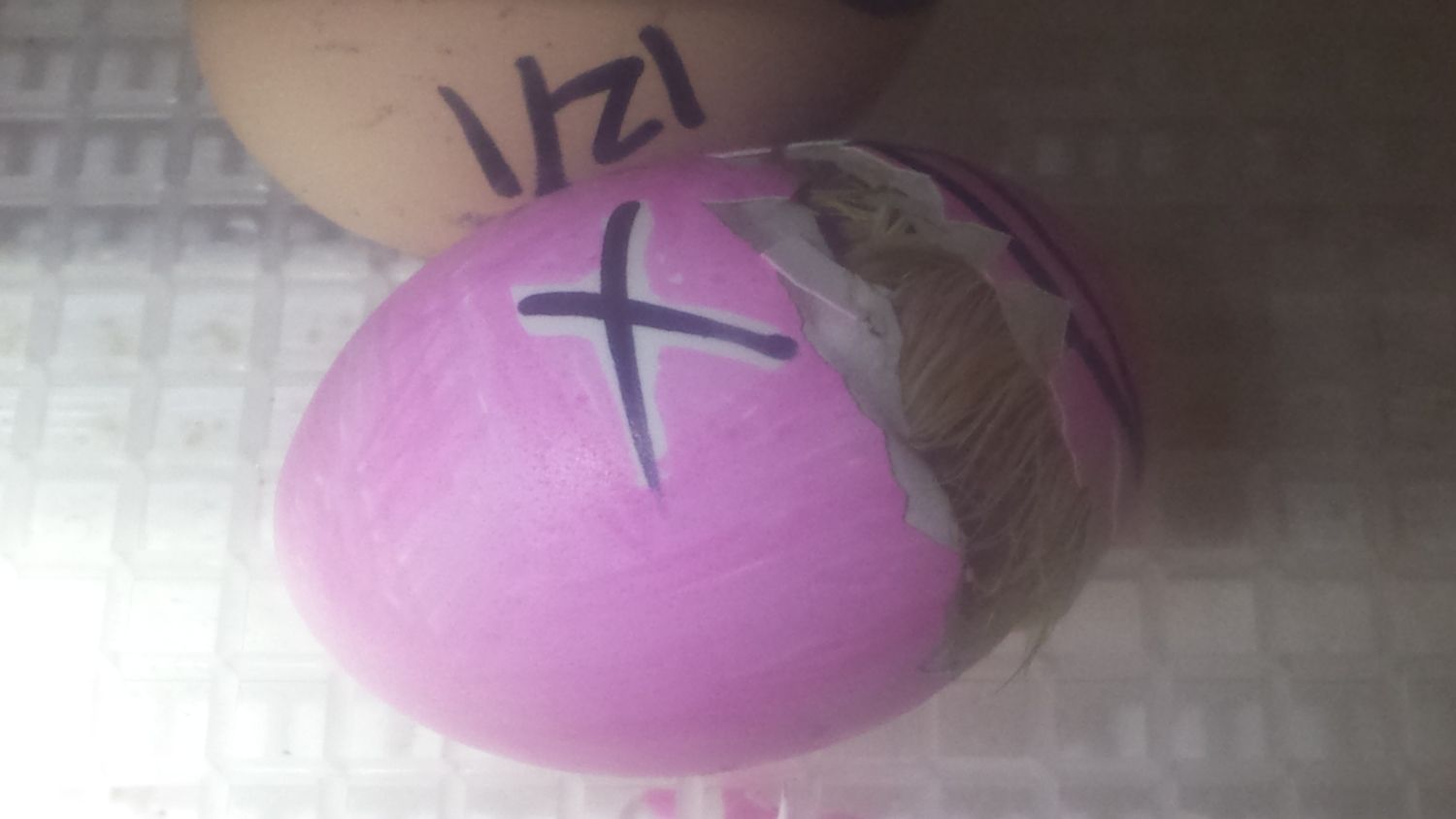 I forgot to post pics of the sharpee color eggs hatching. Final tally, red didn't hatch, but black and pink did, plus several others.