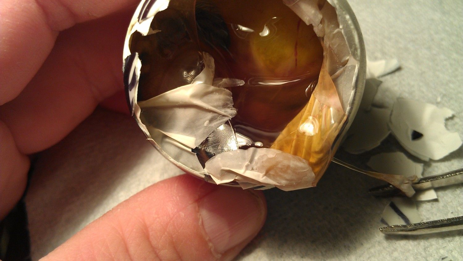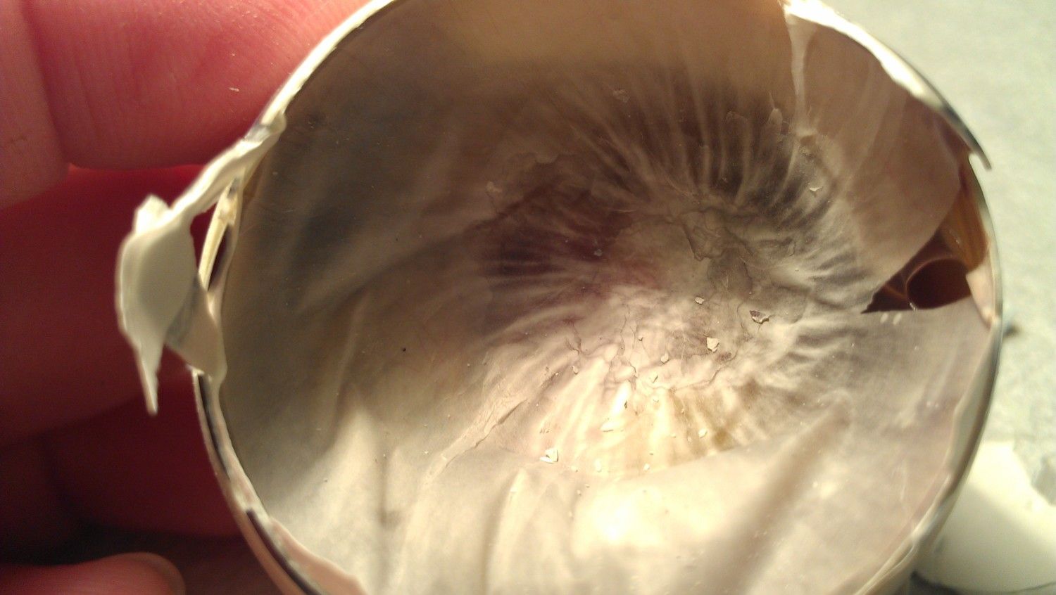 Here's the clear spot in the small end of the egg that I was talking about. The inner membrane with blood vessels never reached it. The spot is stationary and does not move when I turn the egg.