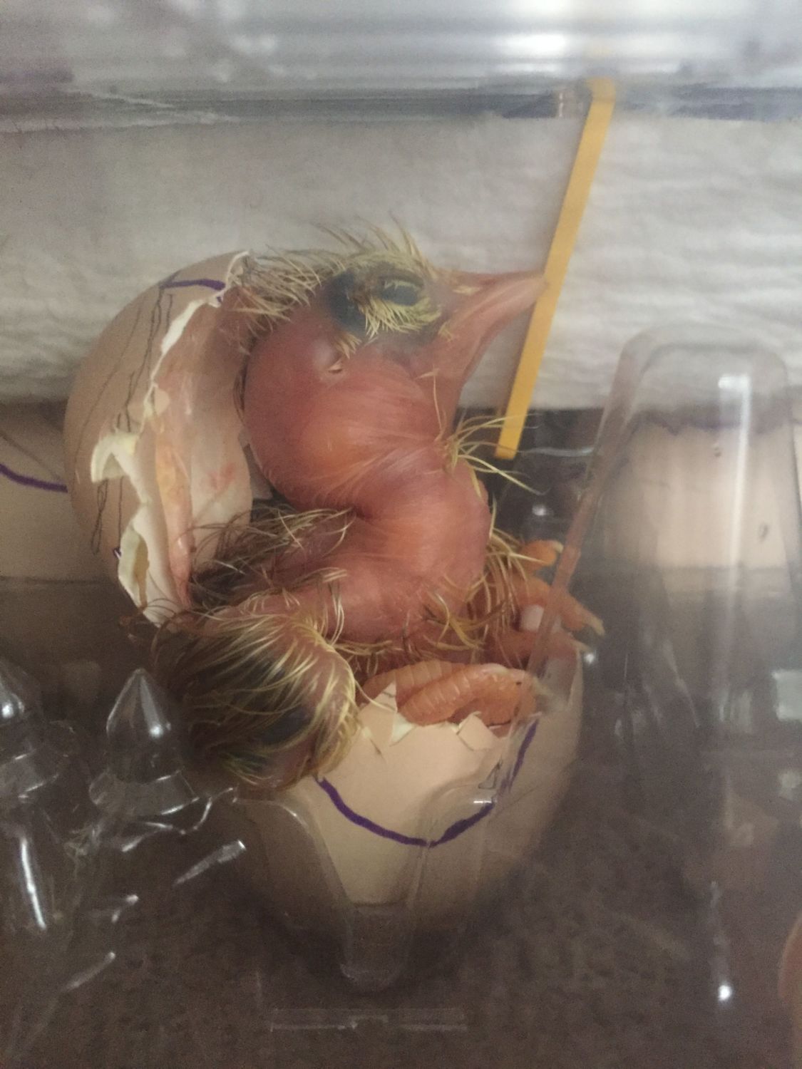 Quote: I incubate upright and hatch with the eggs lying down, but egg cartons certainly work (this was the shipped egg batch with bad air cells):