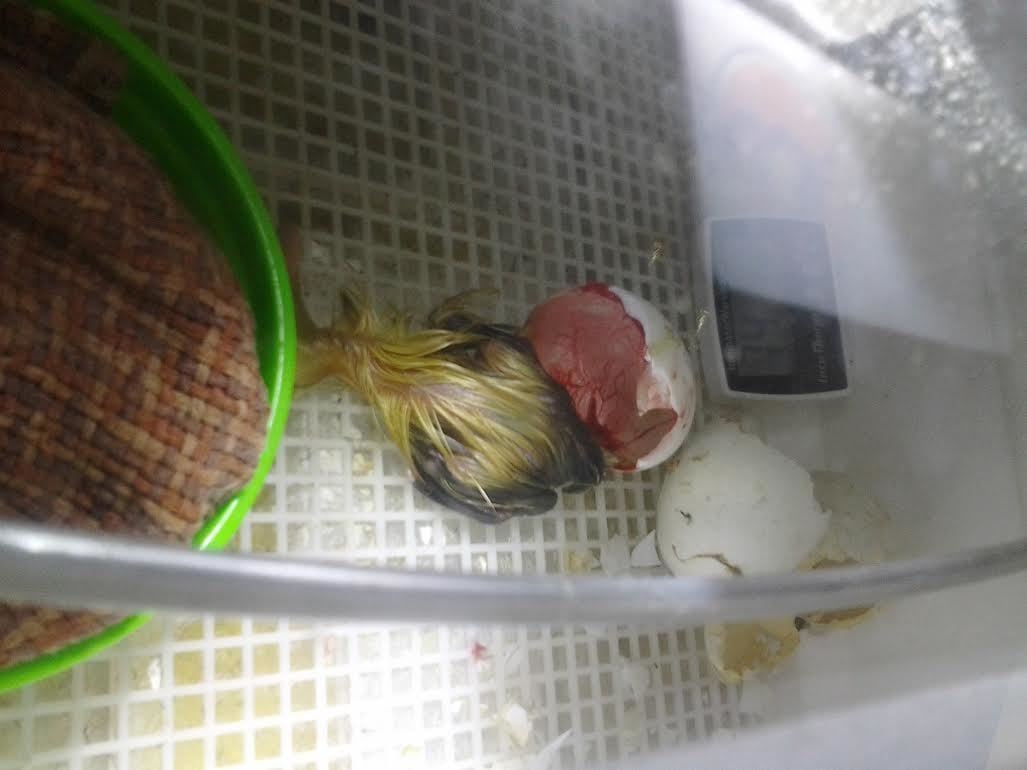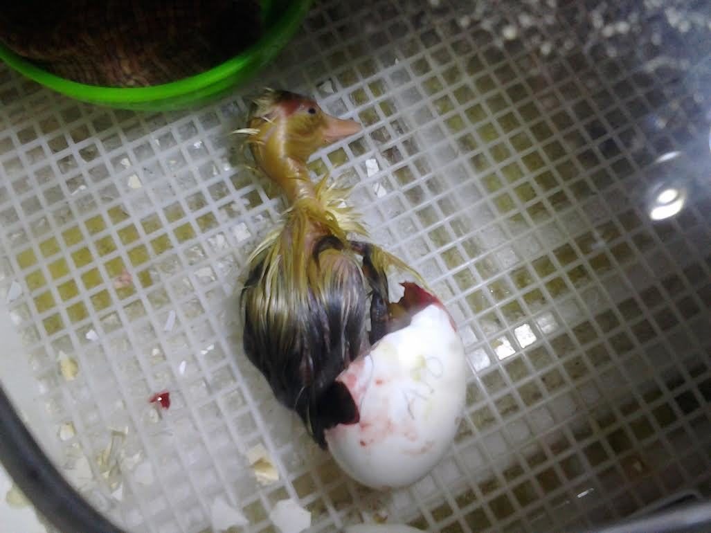 She hatched! I looked in and she had just pushed out. But there is some blood on her head and on the shell, and the blood vessels don't look as dryed up as the other ducklings shells. Is she ok?