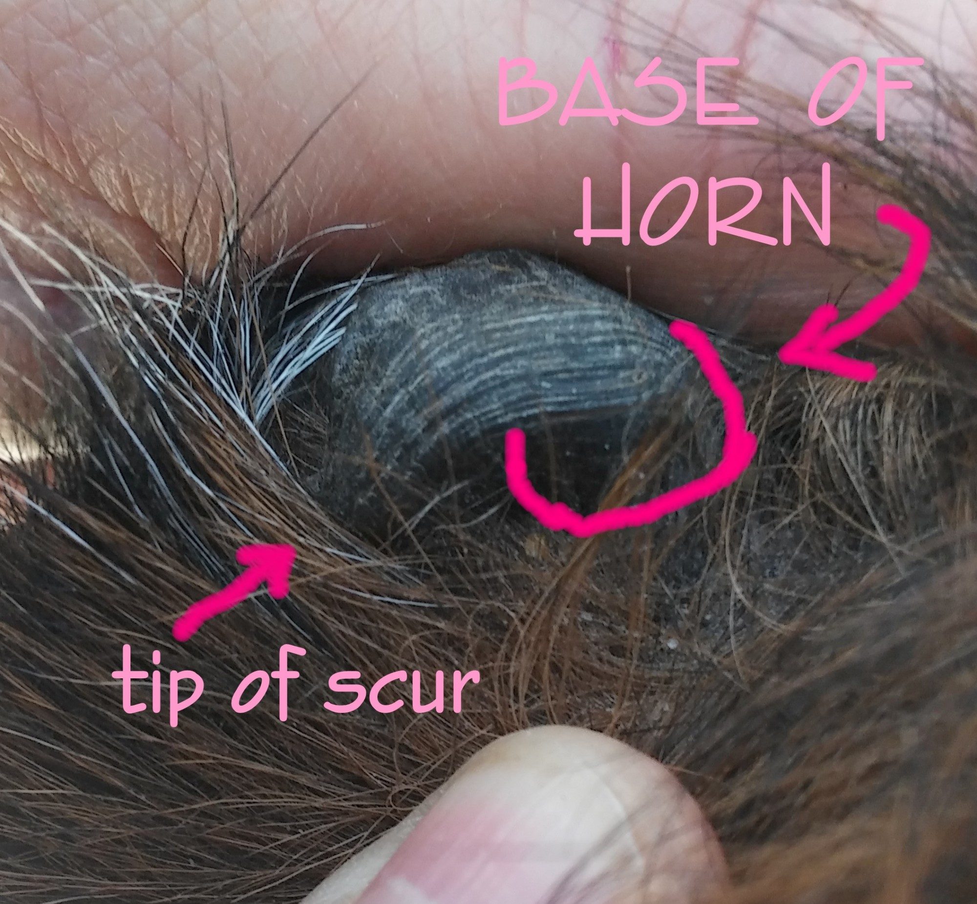 ONE just ONE out of four had horns and was disbudded and I got stuck with this!!! A spur quickly grown round down into Pequots head! I got the saw thing off amazon to remove it, but it ended up breaking off in my hand THANK GOD!! I didnt have to cut that sucker! yuk!!