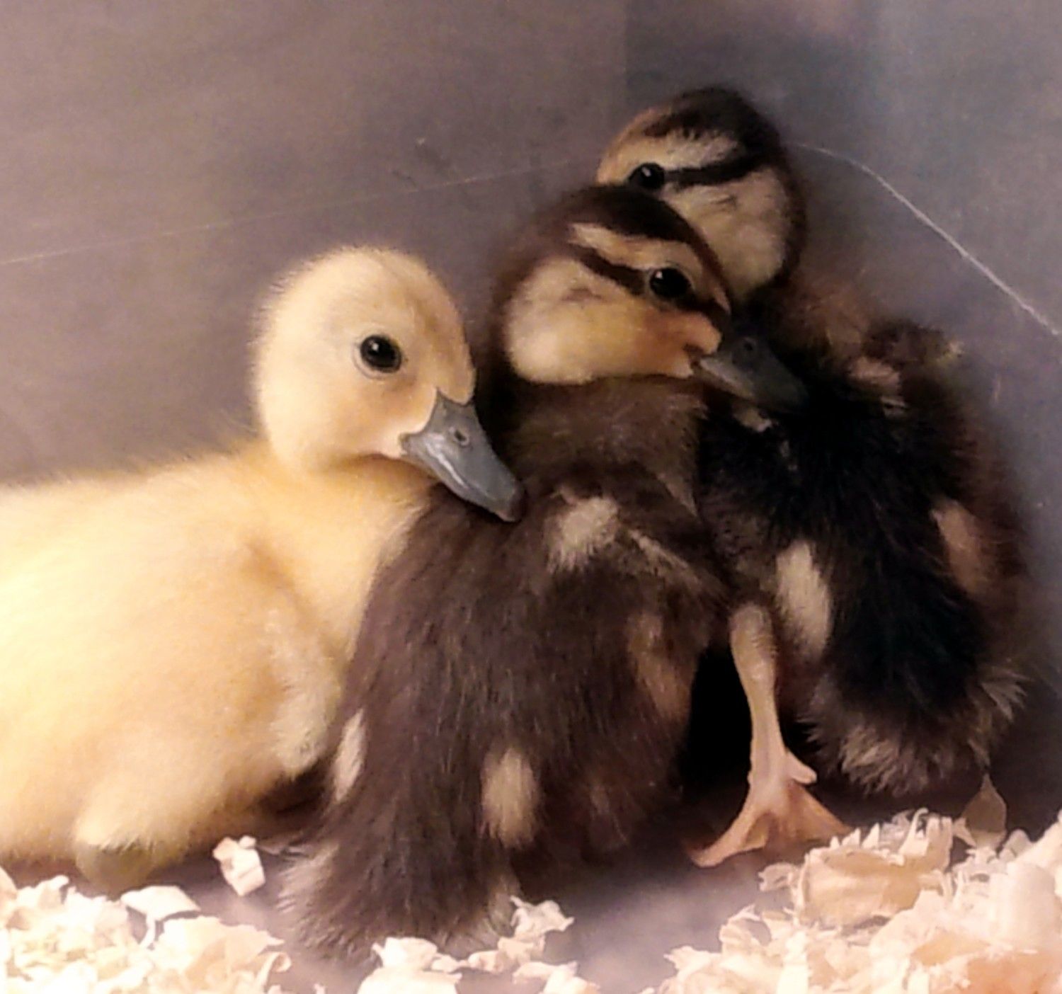 Two just look like Black Australorp chicks (dad is likely pure White Chantecler). One looks the same, but it has a beard (Dad is absolutely Brick the EE). One is almost half yellow. I think that last one likely is from my future chicken dinner (White Chantecler/Buff Orp). The hen that laid that one is Black Australorp/Production Red. Aside from that, I don't know who came from what egg.