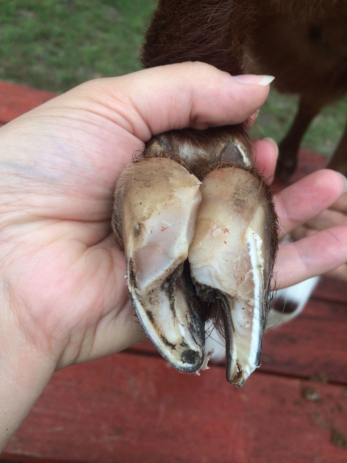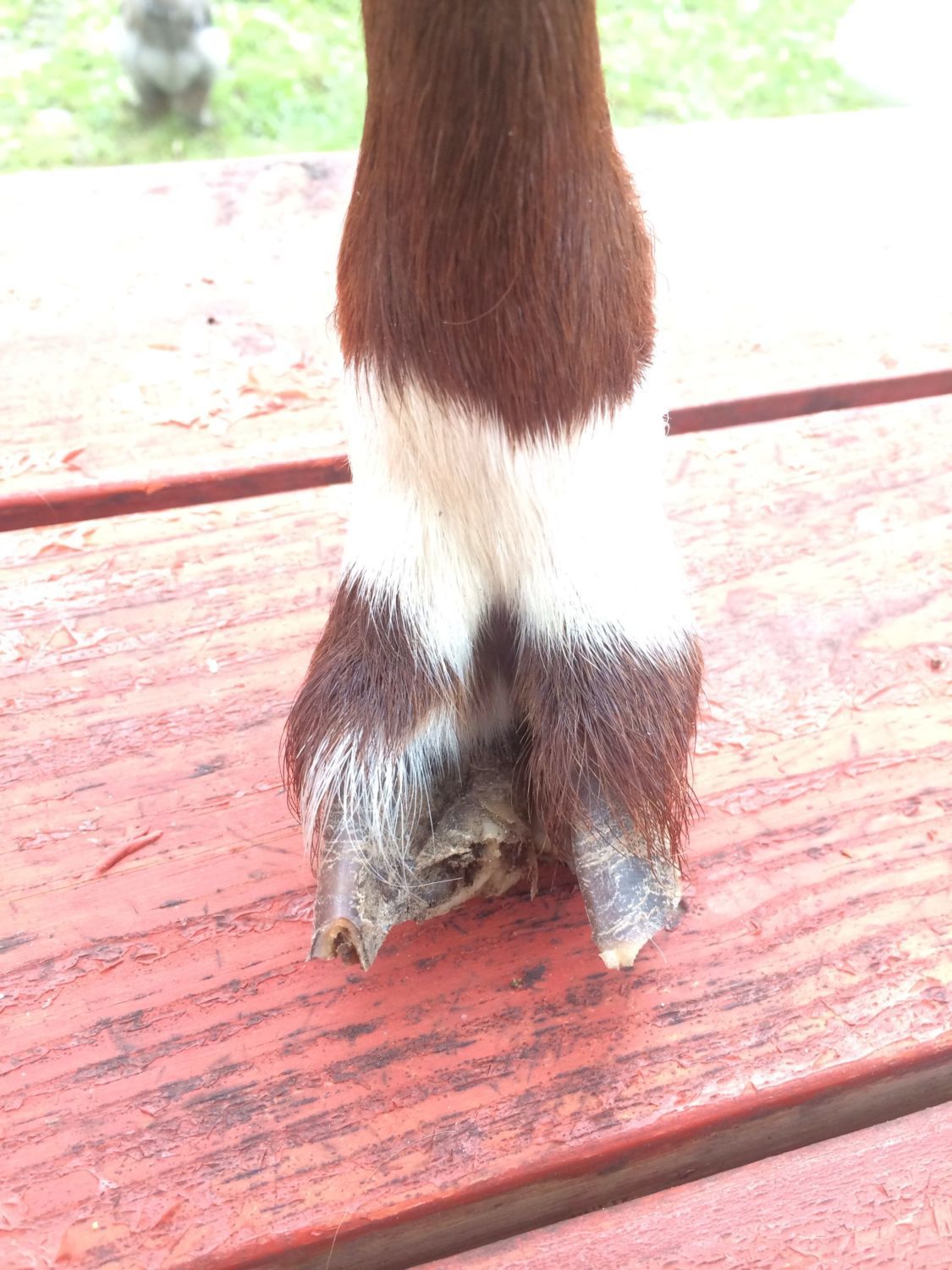 I had the farrier out to look at Beaux's hooves and try to shape them up for me. He worked on it a but but said he's never seen anything quite like it. He said Beaux is walking on the balls (?) of his hooves and stands like a horse does when it has foundered. His back hooves are the worst. I took more pics today, hoping we can get some suggestions? He said he's going to do some research, and that he'll try anything that is suggested. He didn't charge me for the trim.