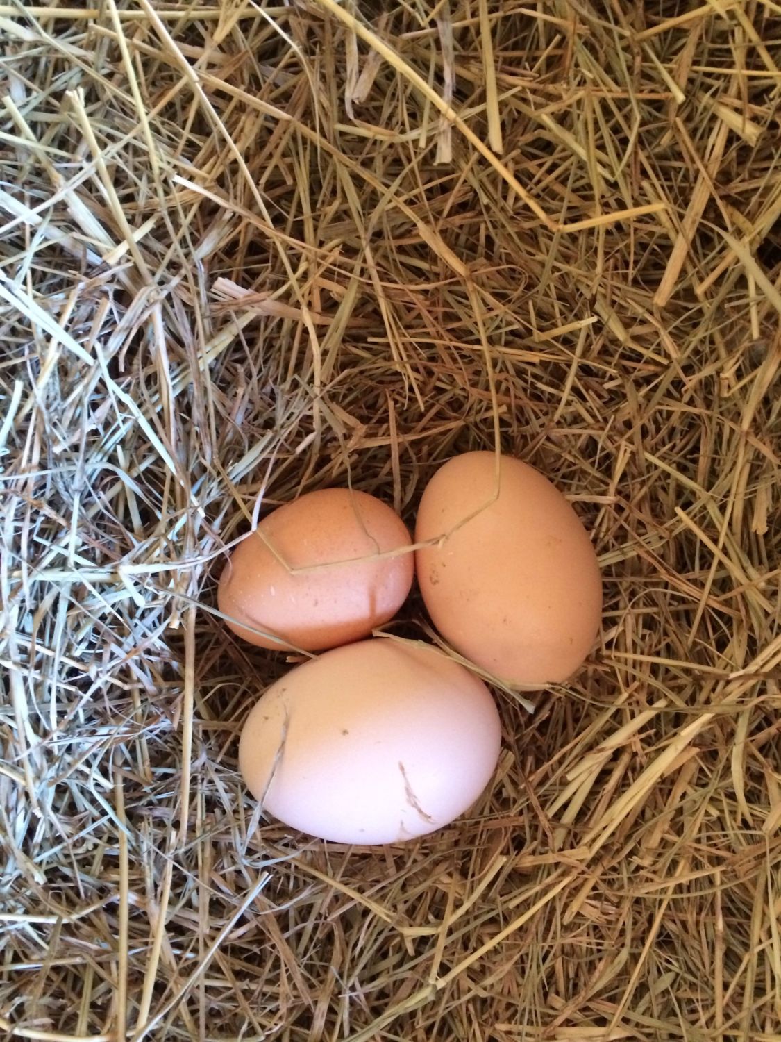 Went out and heard frantic peeping. Cinder was gone, chick was gone. I found Cinder two nests over setting those three eggs. I found the chick out in the run.