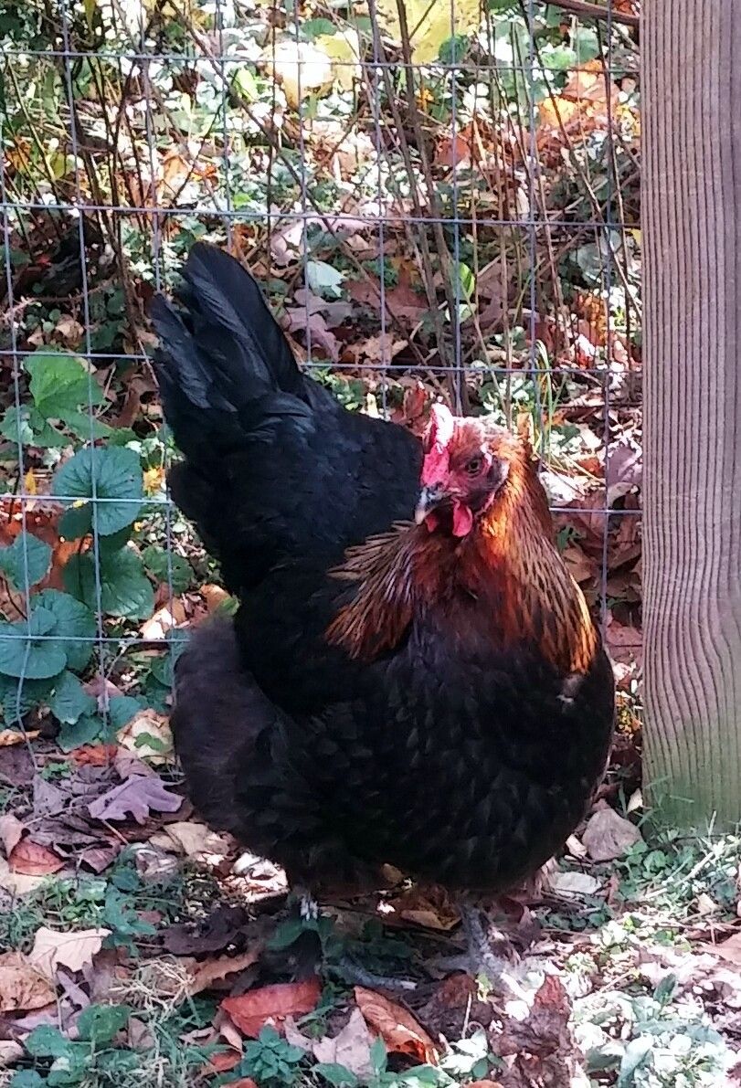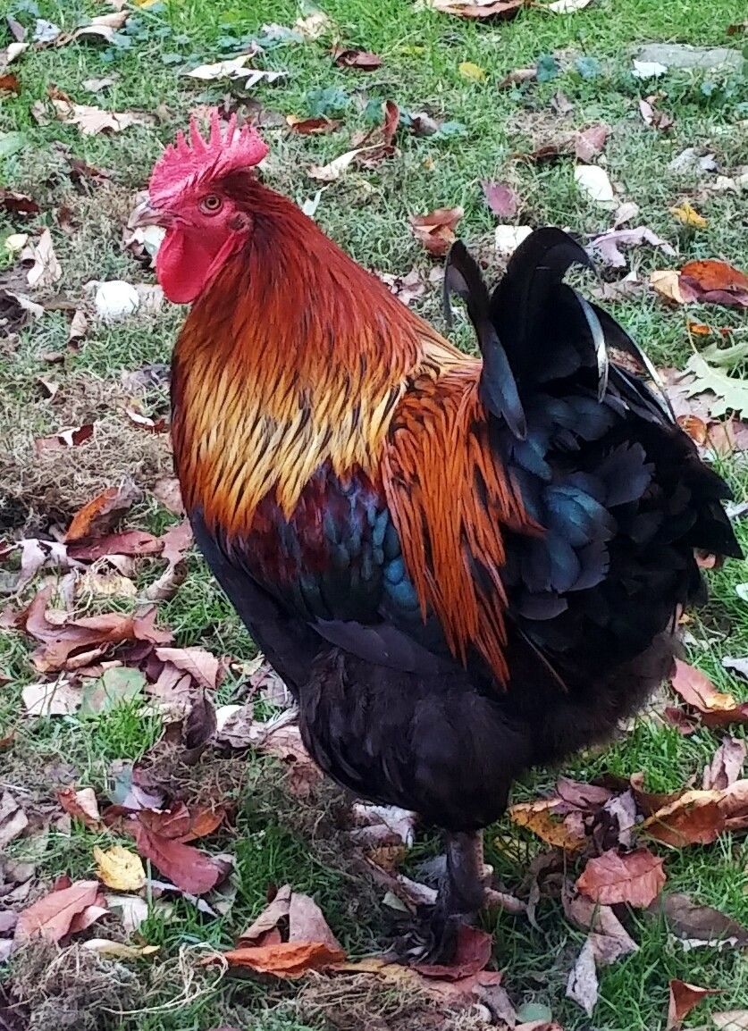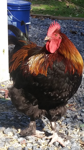 My Beautiful BCM!! So lovely!! Yes I am bragging!!! I just ADORE THEM and cockerel / soon ROO (when do you call them roos?) this guy is young yet. Anyways he is such a big baby to kids and what a great lookout too, although he dont need to with goozers out there!!!!