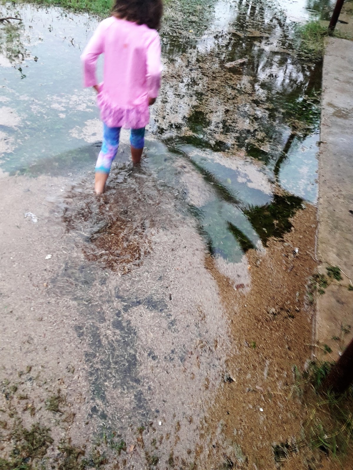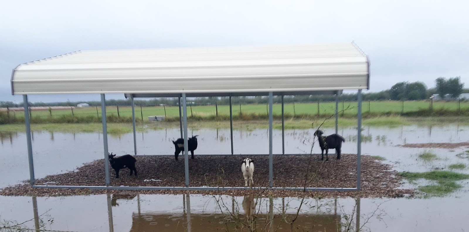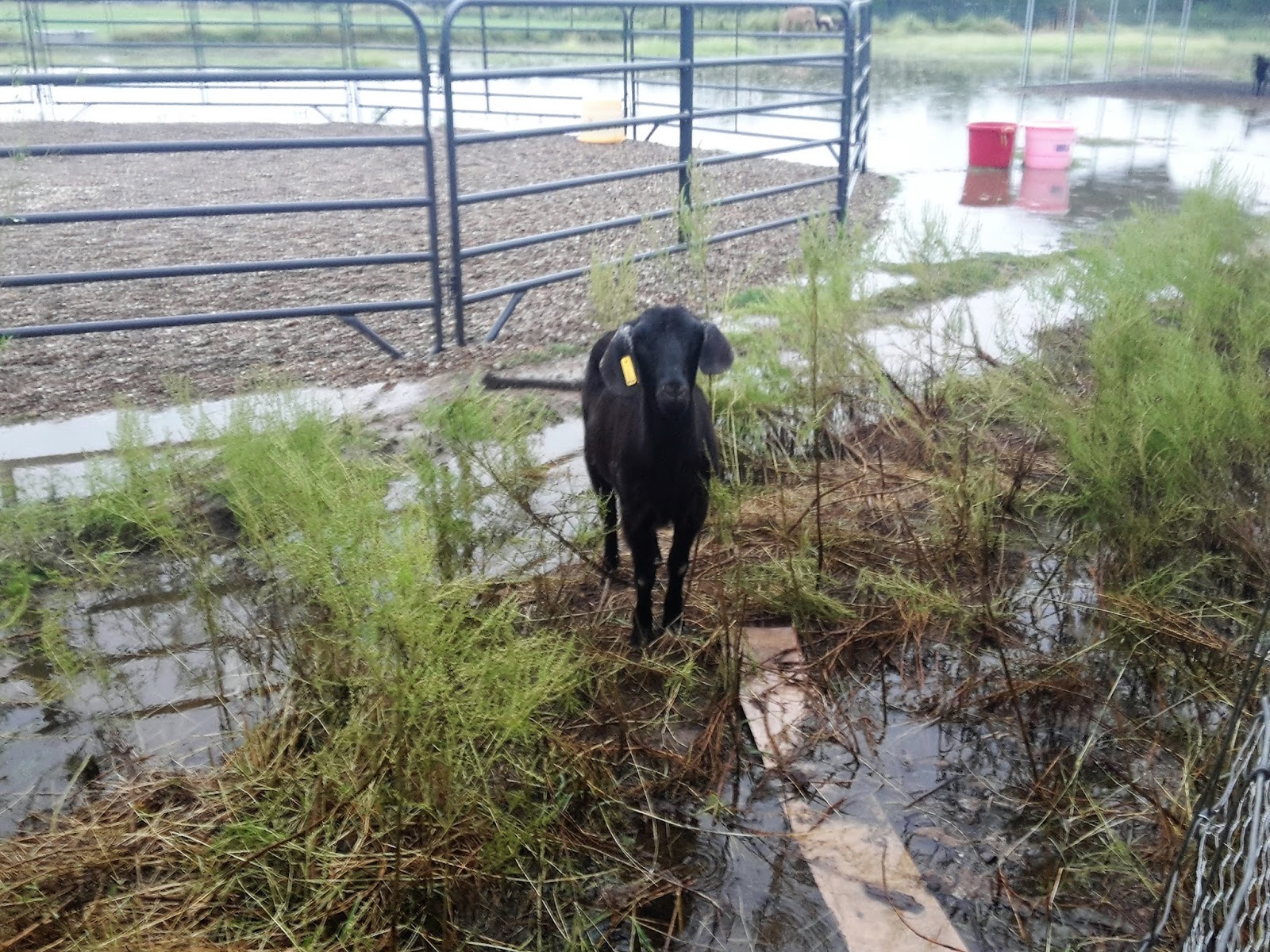 the goat walked through the water, to get to the fence, to see if I had any cracked corn for her. LOL apparently, cracked corn was worth getting her feet wet. :P