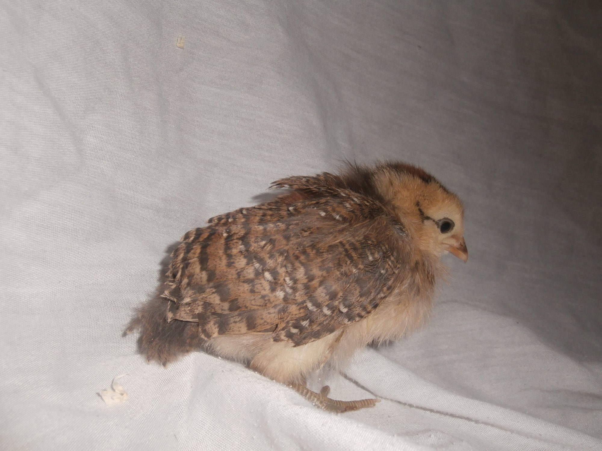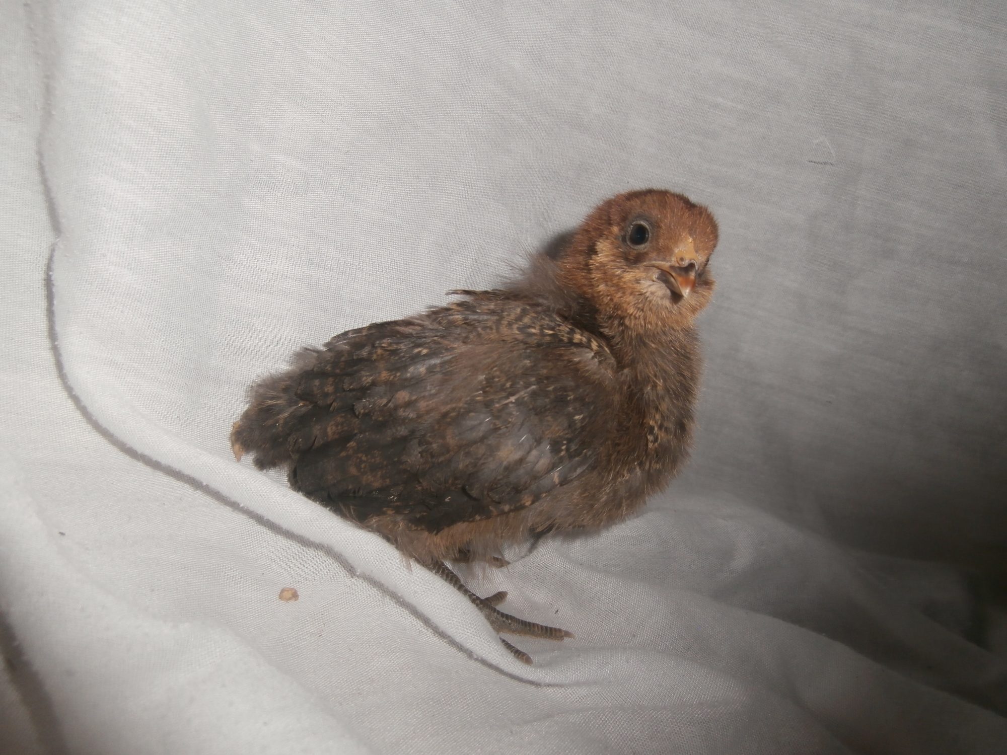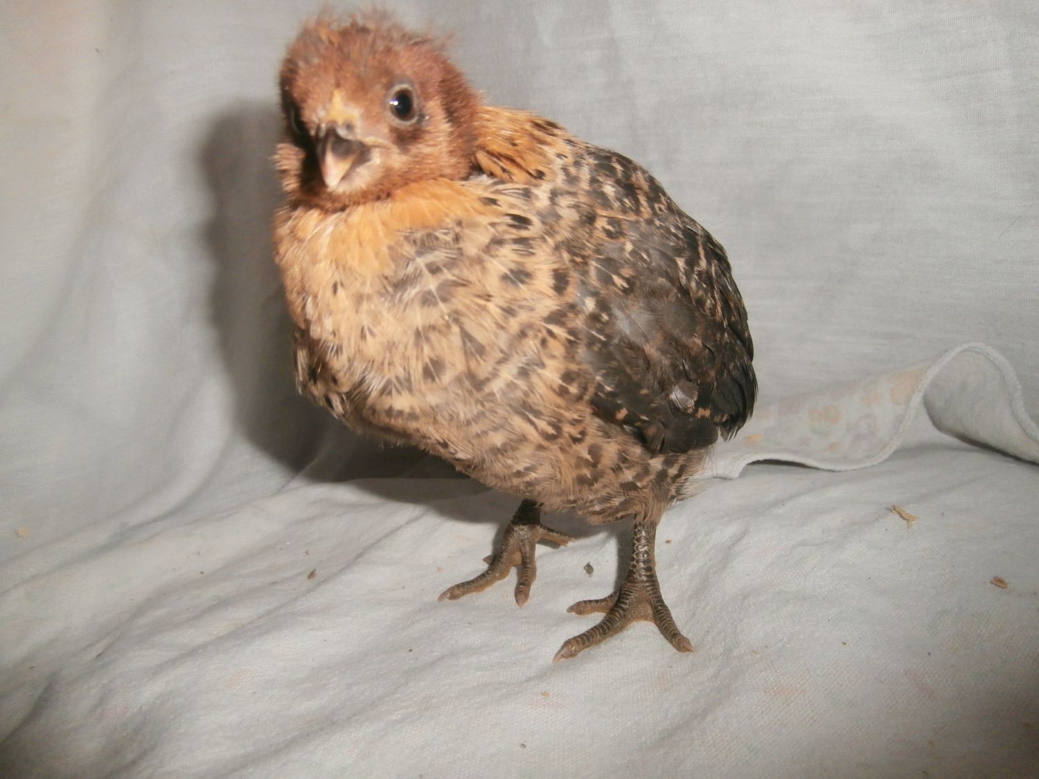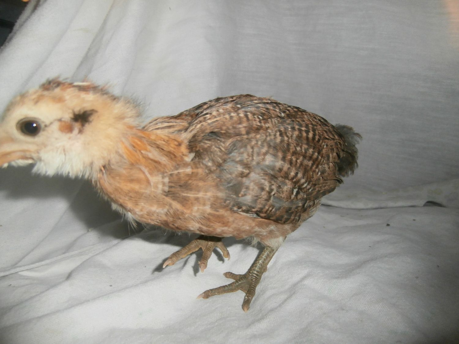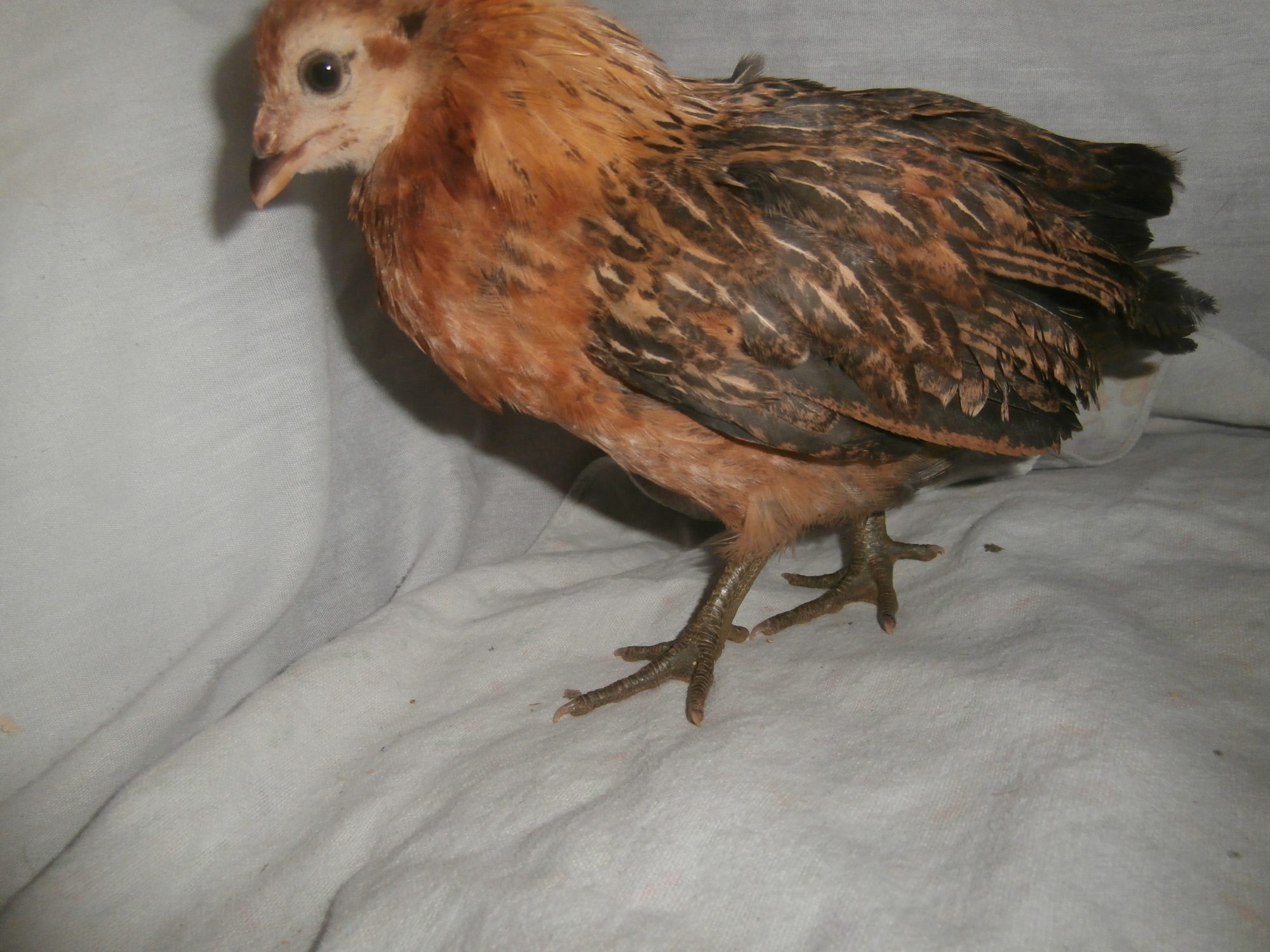 Koolkyle08, where did you get them? The gray one has yellow legs and no beard so I doubt EE. Super cute whatever it is! The chipmunk pattern can be found on lots of breeds. Knowing leg color and comb types would narrow it down a bit but the biggest help will be a few more weeks of waiting to see the feathers.