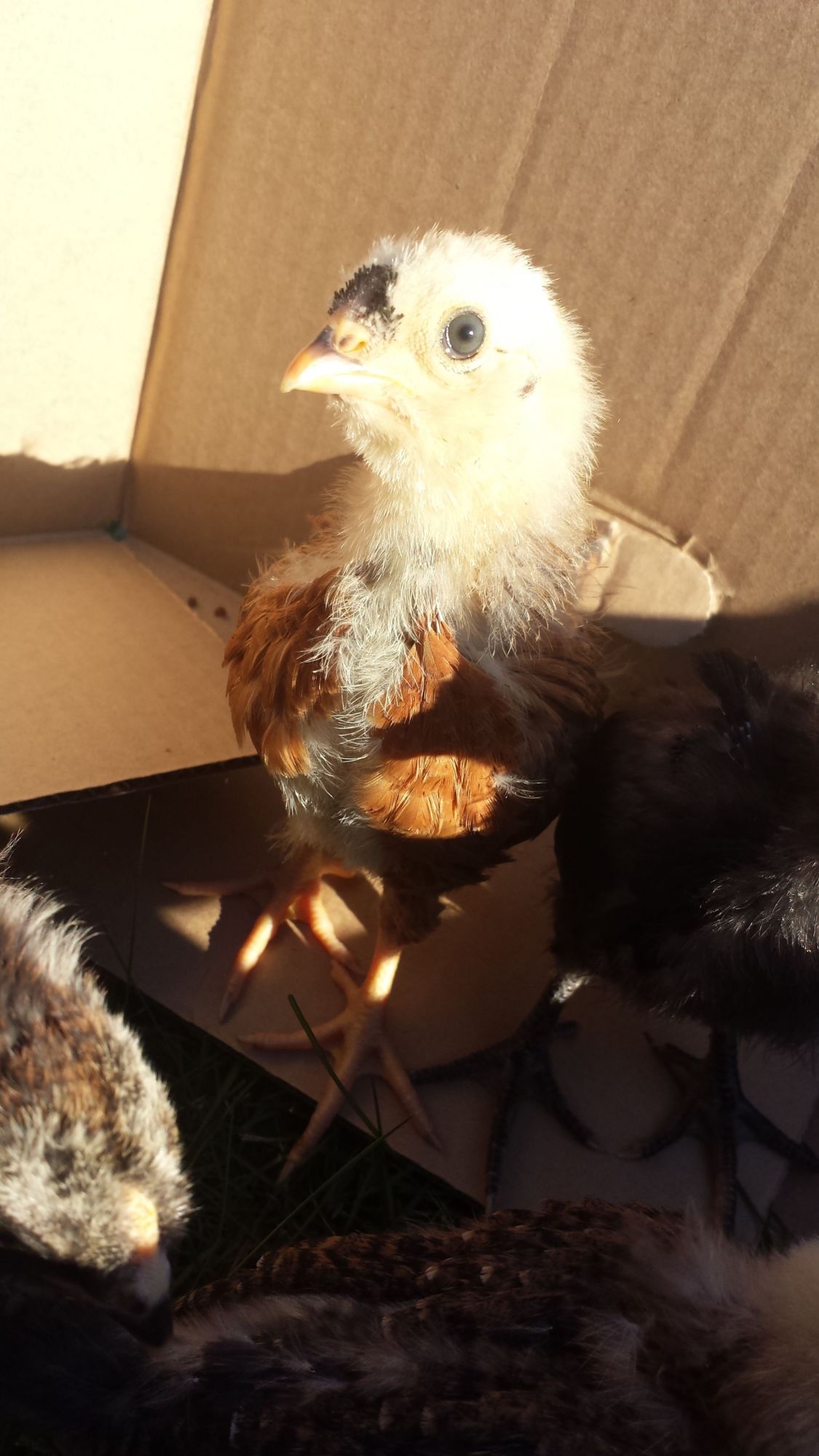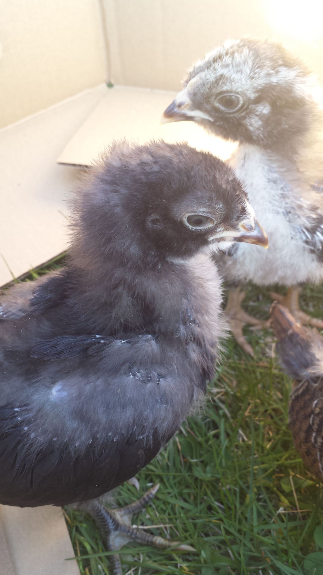 Digger and moonlight were different as chicks. digger was chipmunk and moonlight was blonde with black speckles