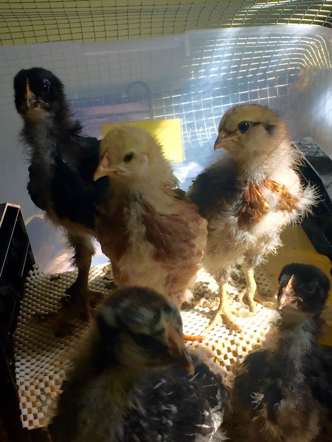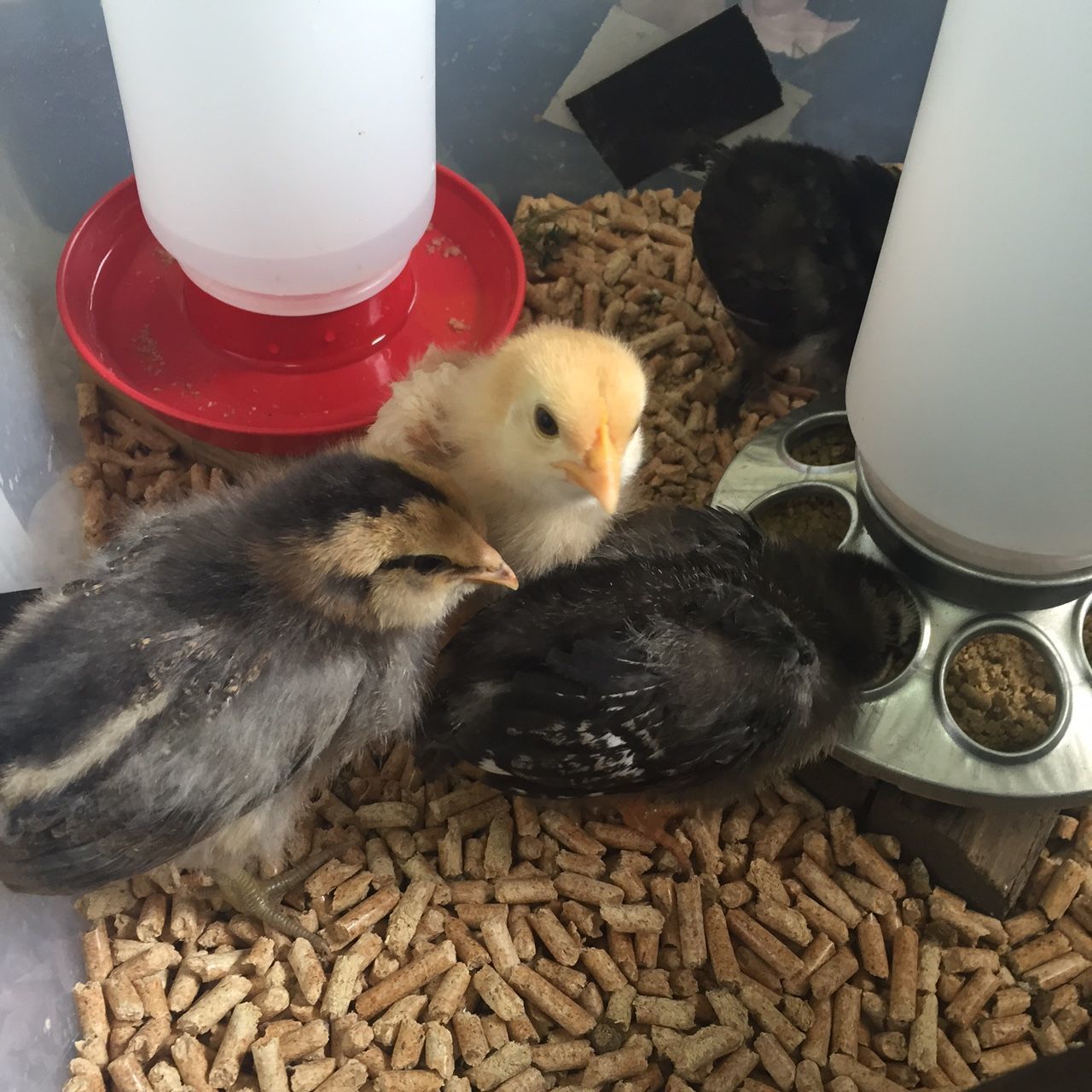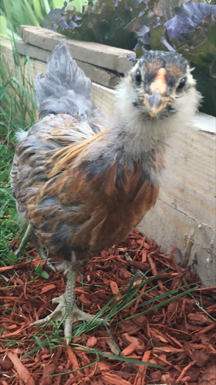 My EE chick's color progression. 2 days: About 2 weeks: At about 3 weeks, she started to get all this red on her chest, and for a while she looked like a robin (upper right in below pic): 4 weeks: 5 weeks: 6 weeks: This is today. She'll be 9 weeks tomorrow. Or he. Pretty sure she is she, though: I just noticed looking through these pics how the original yellowish beard fluff went away but then it came back dark gray, just in the last couple weeks. Cool!
