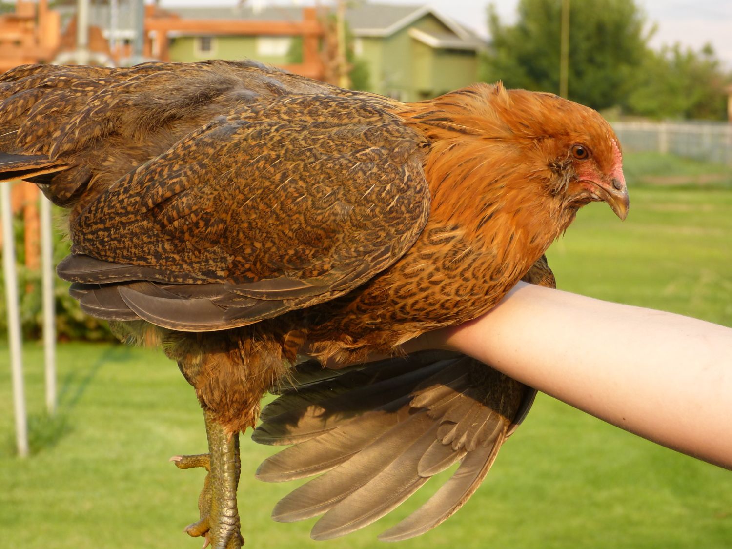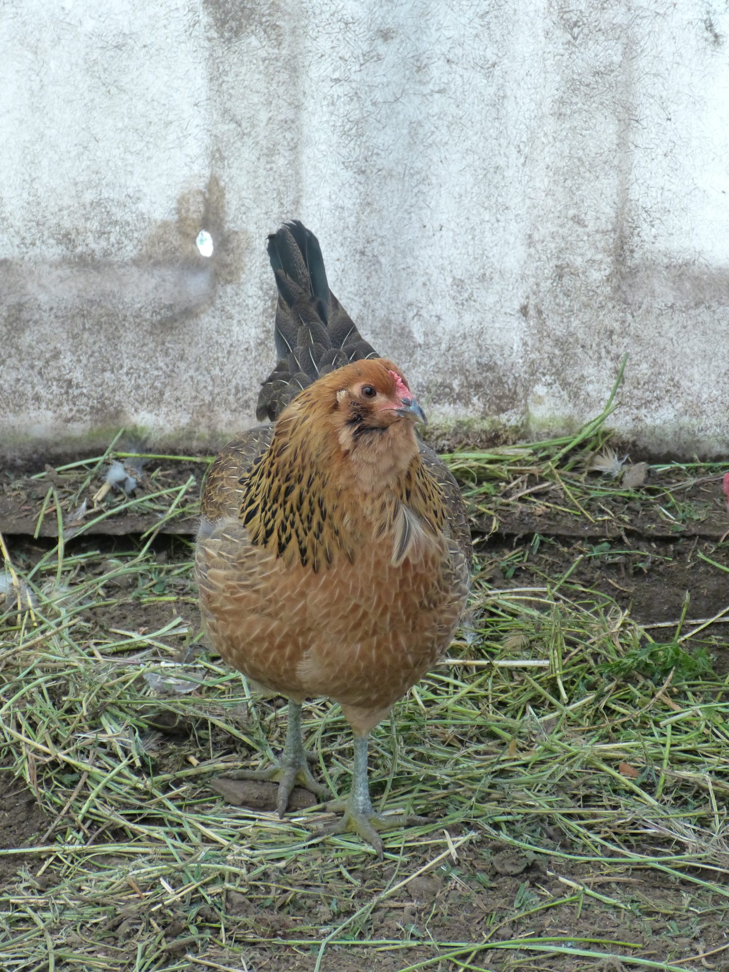 this in mum, im assuming shes an orpington, shes one of the biggest birds and biggest egg layers and biggest eggs, dad is a french standard araucana