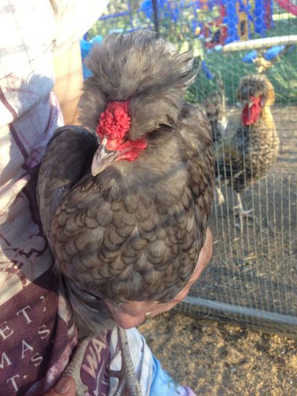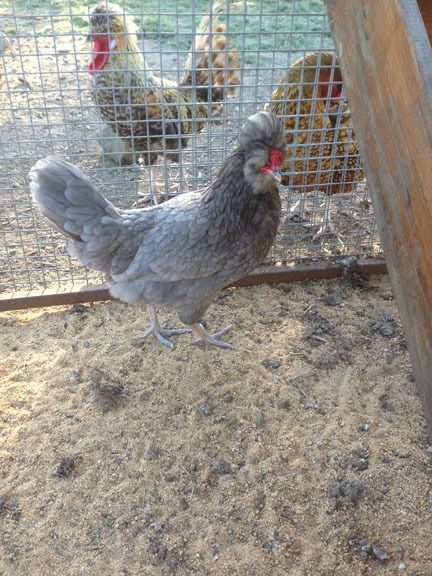 We had three chicks which are Australian Auraucana x Polish. They are 4 months old 2 we are positive are female but we are still tossing up with the third (pictured). I was hoping someone might have a better idea? (thats the dad polish rooster in the background photo bombing lol) It hasn't crowed at all but the comb was quite different on this one and we can't confirm whether it has laid any eggs. Doesn't have any spurs yet if it is a rooster. Thanks!