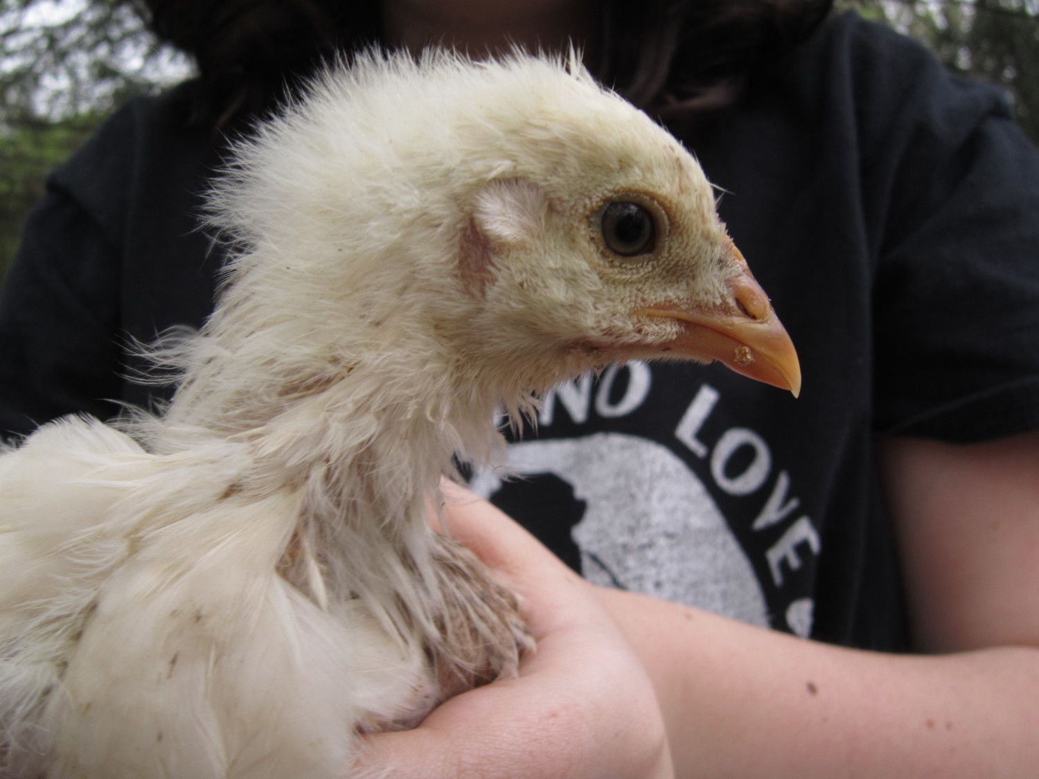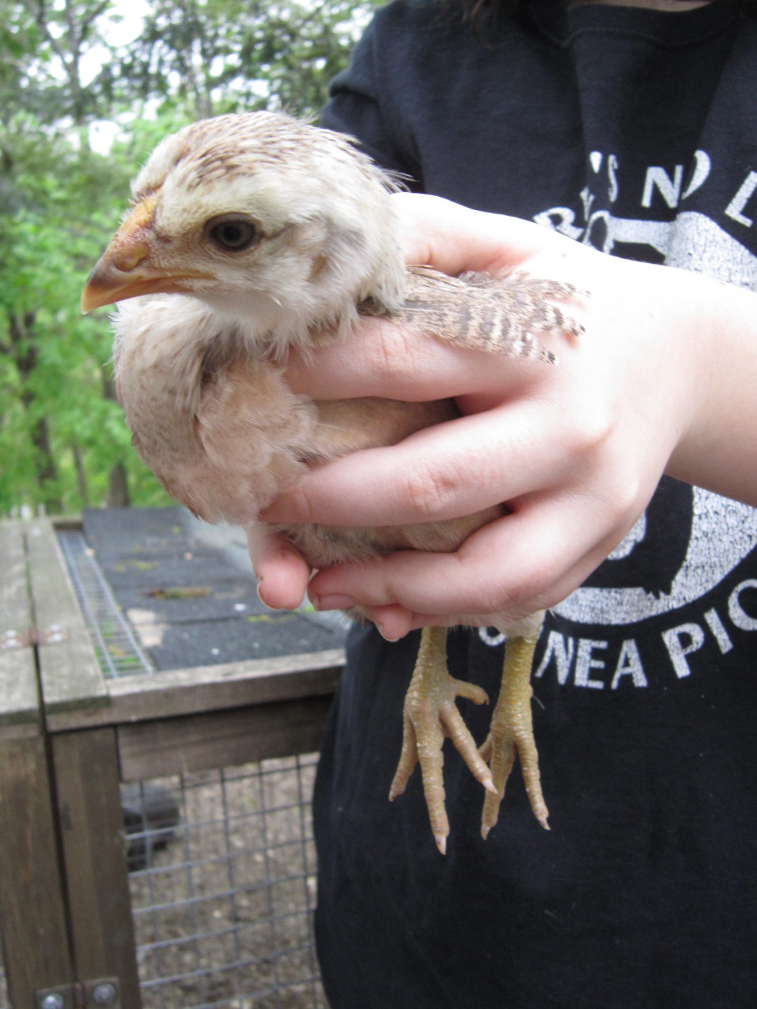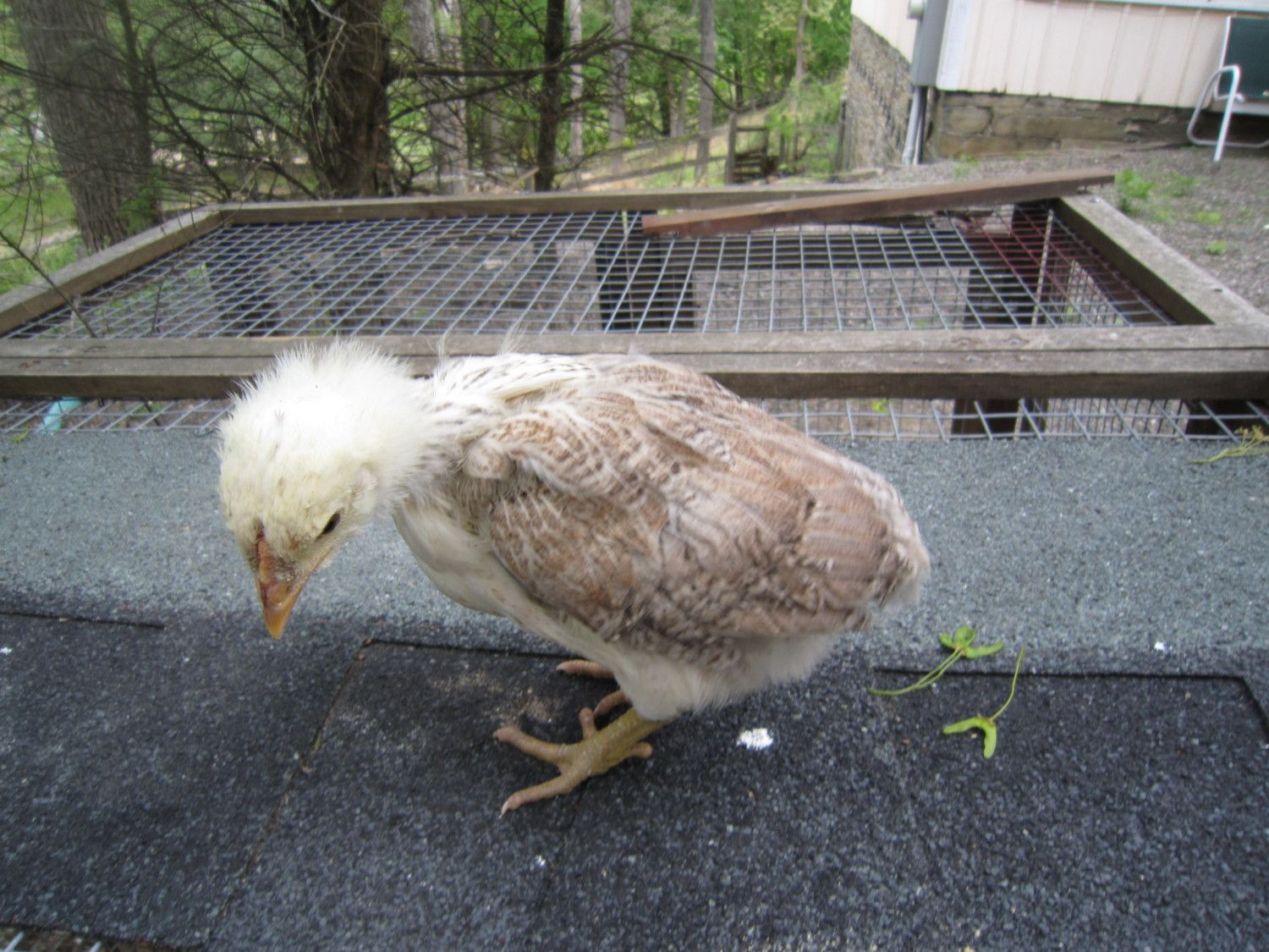 THIS IS THE 2nd EE - "Lola" - her/his head is still a lot more baby fluff than any of her same aged flock mates.
