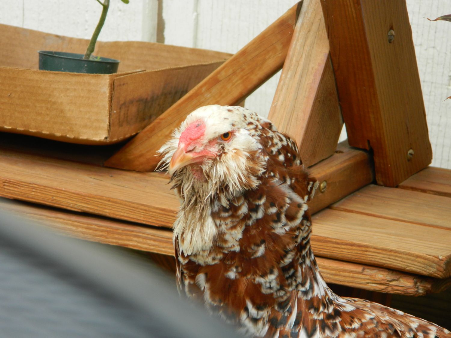 I have had this hen for a few years and I really love her looks and personality, I just can't figure out what she is. I got her 2 years ago as a left over Easter chick from Privett Hatchery, she was shipped as a hatchery choice all pullet special to my feed store and was the only one that looks like this (granted there weren't many left over chicks when I got her). She was all yellow as a chick with a fluffy face. Now she has huge muffs and a beard, pea comb, white/pale legs, and she lays a light brown egg. My best guess is an EE cross speckled Sussex. It seems strange that I would get a cross bred chick from a hatchery though.