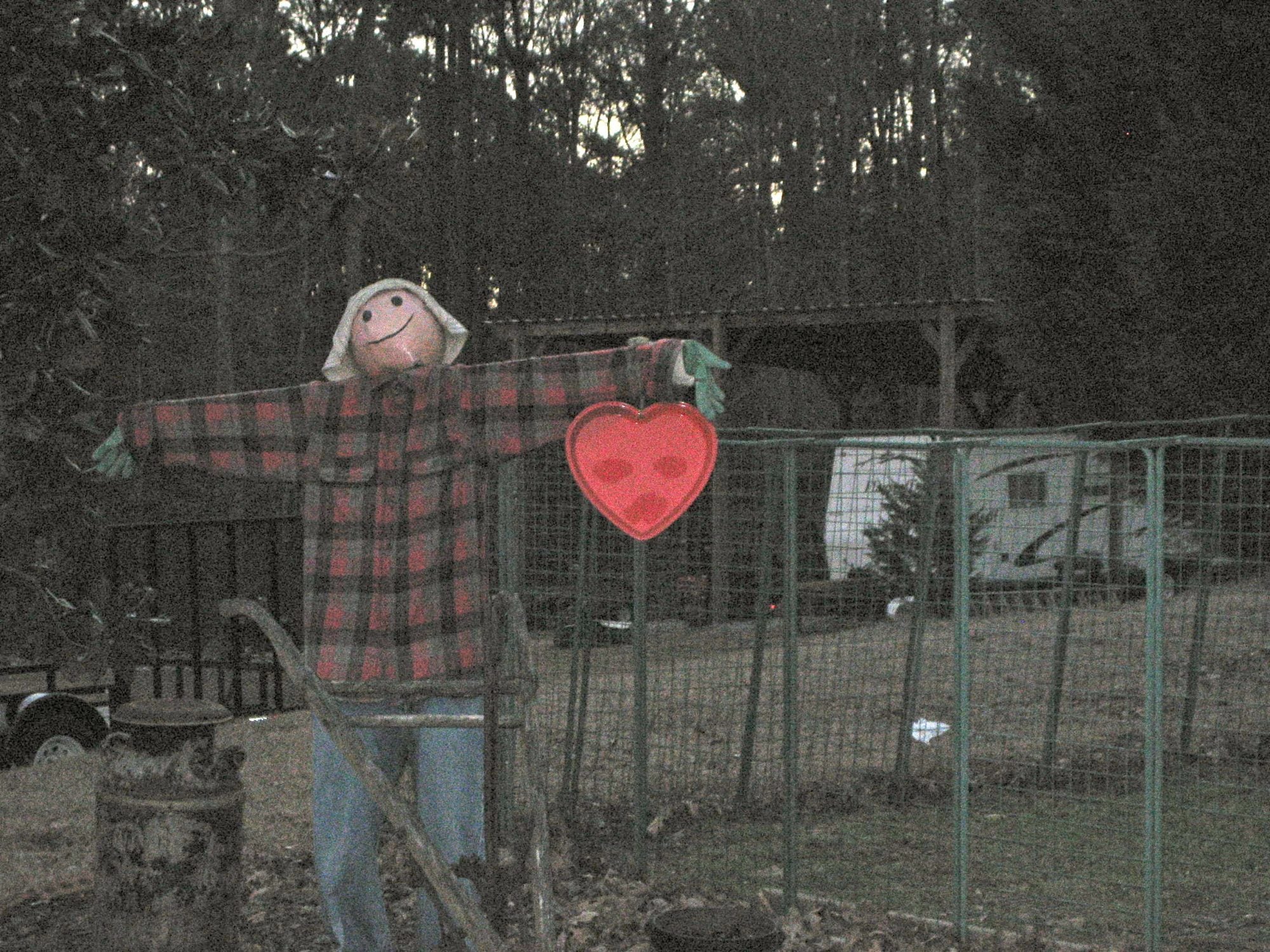 Face appeared on my scarecrow's valentine. Appeared with no physical explanation, lasted 24 hours and disappeared. The valentine is a $1 plastic serving dish with a smooth, clean surface. My husband & I inspected it closely and there was no dew, dirt or tampering to explain it!