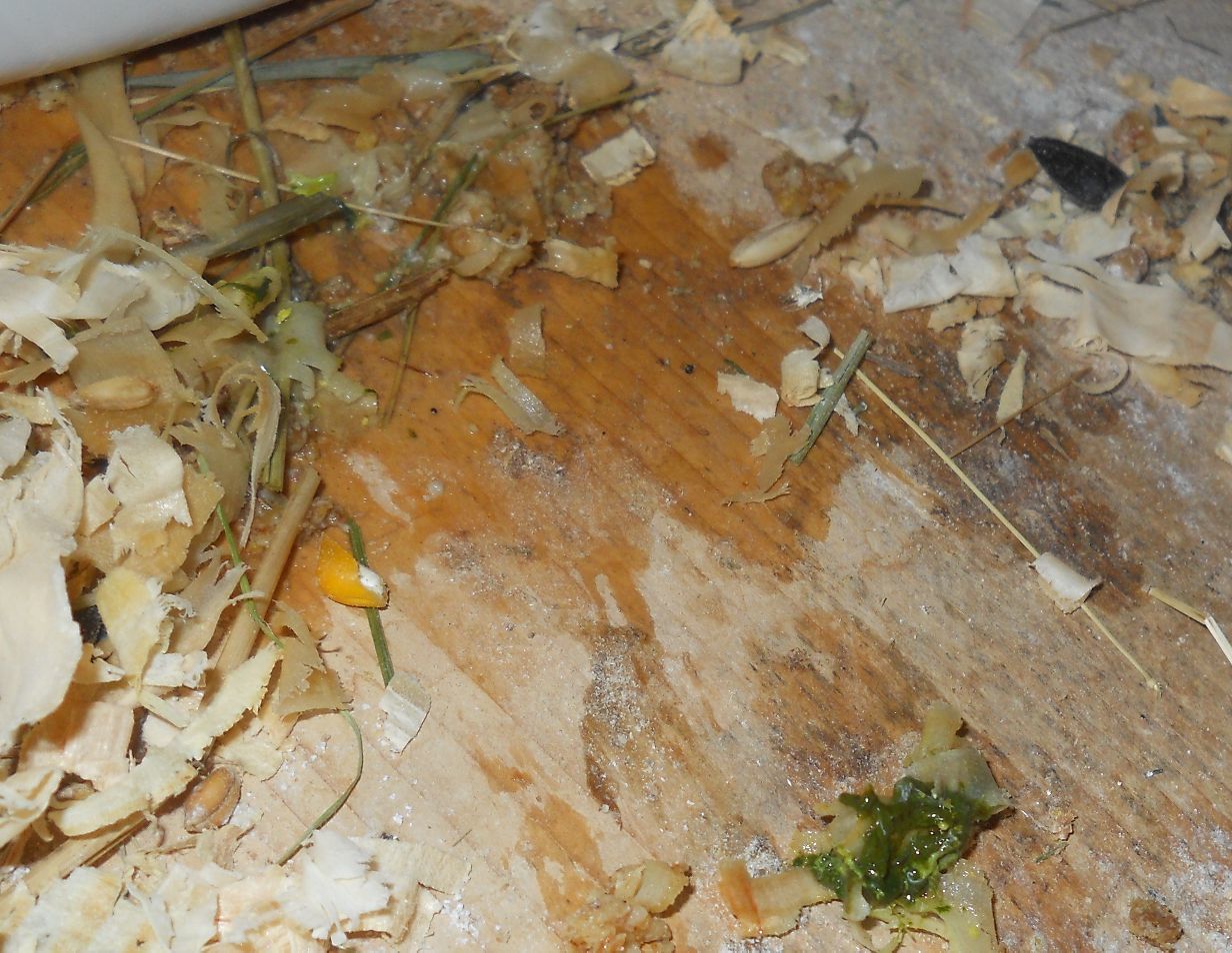 @casportpony Yes, I know about the 5 day treatment, but this time, I did them once and just did it again in less than two weeks. I don't know that they have capillary worms or any worms, necessarily, though this group has been penned more than free ranging this spring and those need more worming than free rangers, generally. Serena's abdomen is completely pliable again. Her crop isn't working well, seems to me. It's slightly doughy. Again, molting exacerbates so many underlying issues and the crop is a barometer of whatever might be wrong in there. We did another dose of the calcium gluconate and massaged her crop to push things along. Could be this molt is taking a lot out of her for some reason. It's been a super wet winter and maybe they do have a higher worm load than usual this year. I have plans to buy Valbazen but I can't afford it this month, unfortunately. And getting DH to help with doing things like worming and toenail trims is not always simple. It's all on me. This is why I will not keep the numbers I used to keep anymore and am working on thinning the ranks through attrition (though I'd rather the old ones pass on, not my prime layers, sheesh). Here are the poop pics you asked about, Kathy. That white stuff underneath the shavings is DE I sprinkled to help dry up the floor of the cage. That wet on the left is her poop, not water. ETA: I am doing the rest of the 5 day worming with Safeguard, if I have enough left to do so. They've had 2 days of it in a row this go=round. Serena is not doing well. She stands with eyes closed, has lost more weight. I fear her issue may be liver failure or something like that which is invisible to me and completely beyond my control. If not, it's something reproductive that heavy calcium doses isn't fixing. I hate to lose another younger hen but that is the theme of the past year or so for us, all from different stuff.
