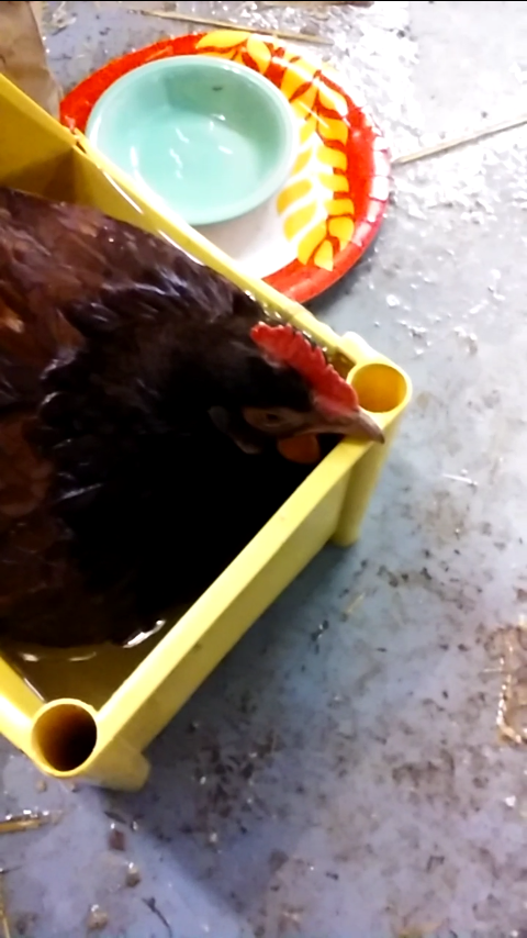 I hope an egg didn't brake in her :( I would have no idea how to get the shell out. Here's a picture of her in her warm bath.