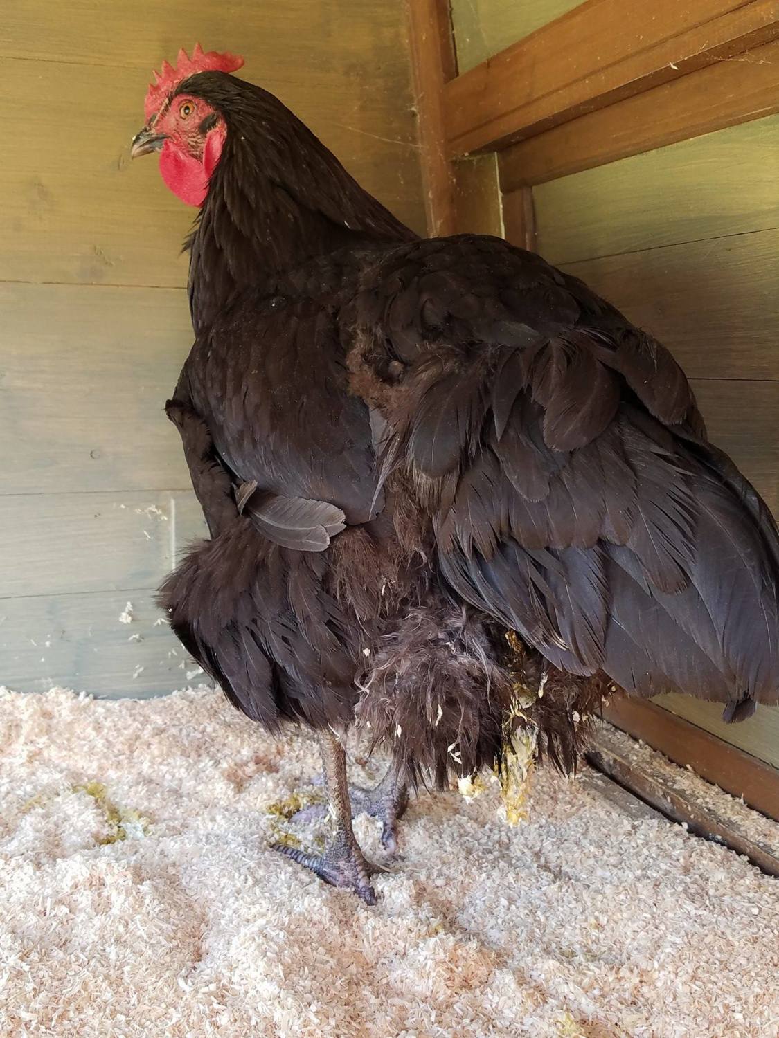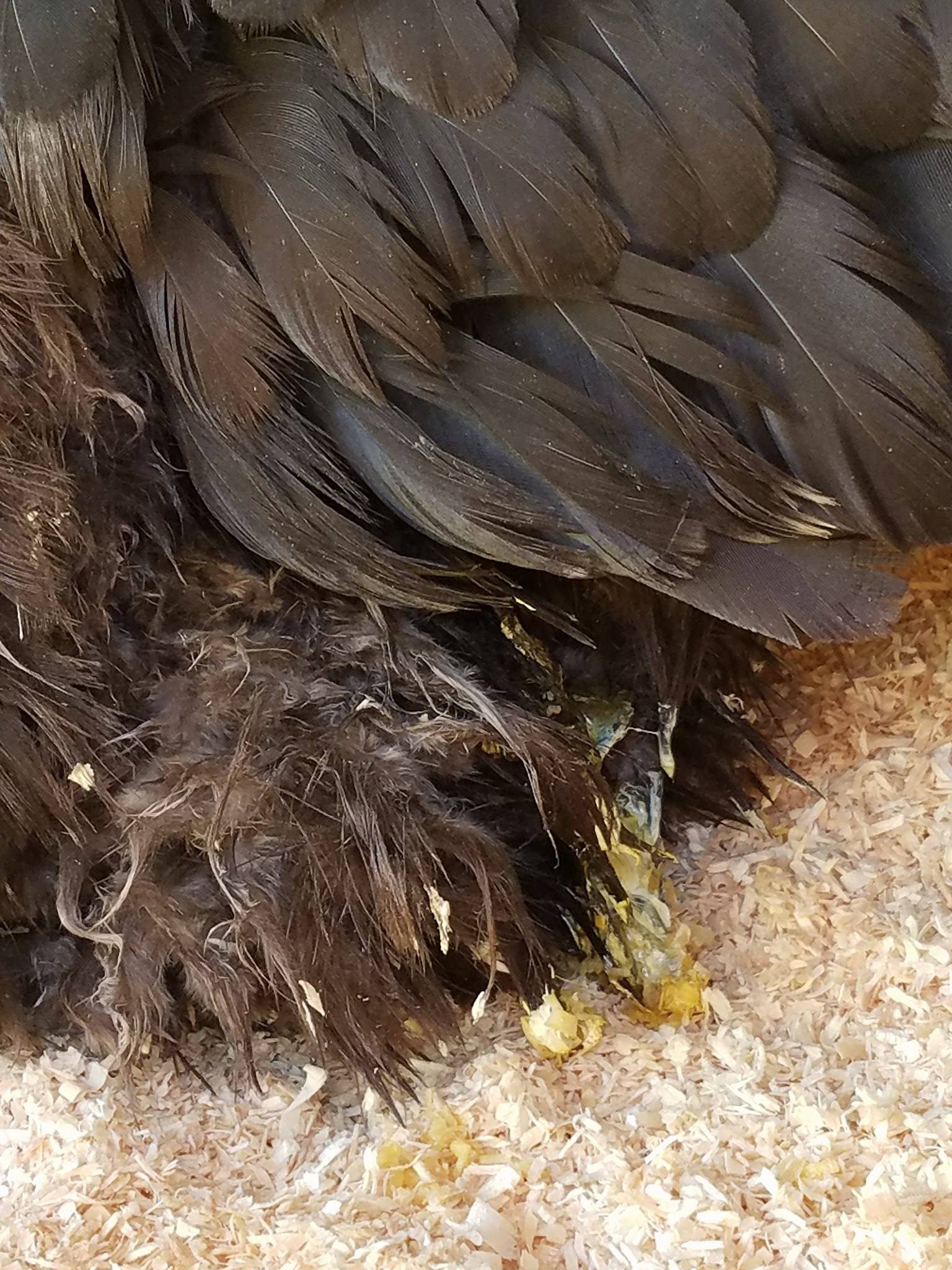 We have a 1 yr old Black Australorp (Lola) that we noticed was acting strange last night. When the girls were going to bed she didn't get on the roost with everyone else, she laid on the coop floor. We decided to separate her at that point and put her in our "hospital coop". When I picked her up I felt a bulge near her tail underneath her. But it was kind of squishy, not hard. We put her in the hospital with food and water and came back to check on her an hour or so later. She had a liquidy pasty clear/white/yello poop on the floor and down her backside.