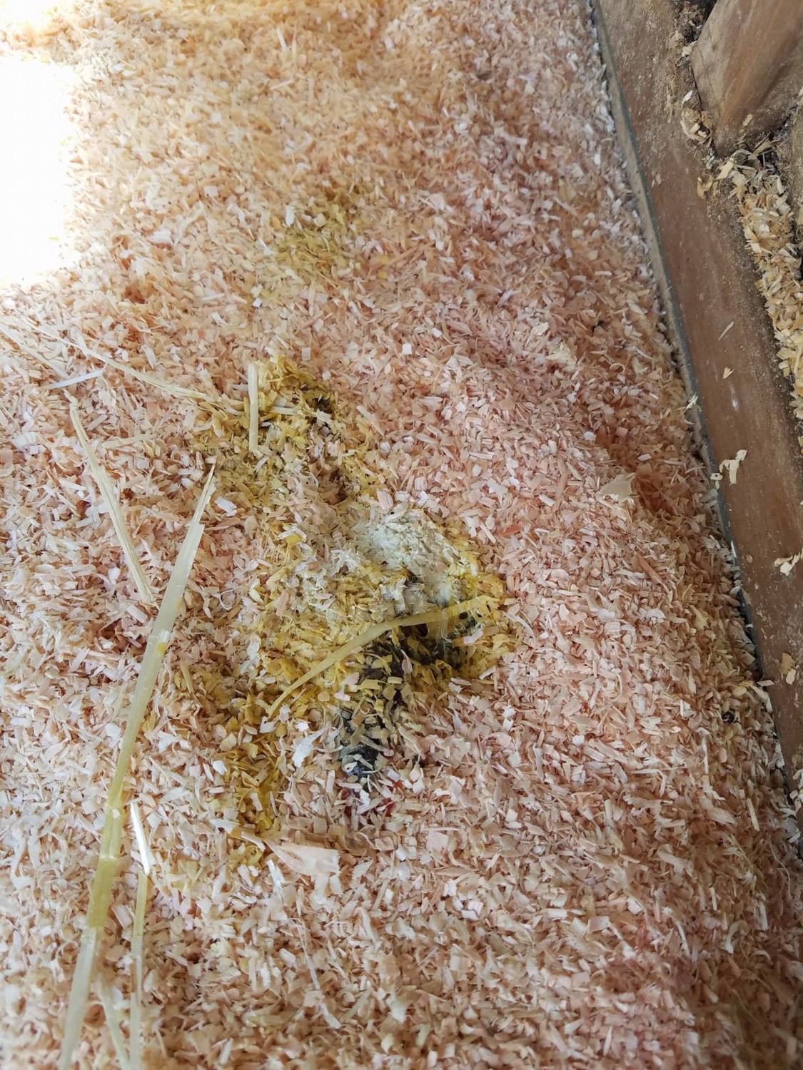 This morning I checked on her and there is even more of the liquidy pasty clear/white/yellow poop and some regular looking poop on the floor. When I opened the door she stood right up and went to coop door to be let out but I didn't let her out. I checked her abdomen and it is still bulging but it's not "hard". For now she is still there with food and water. I plan on giving her another bath at Lunch.