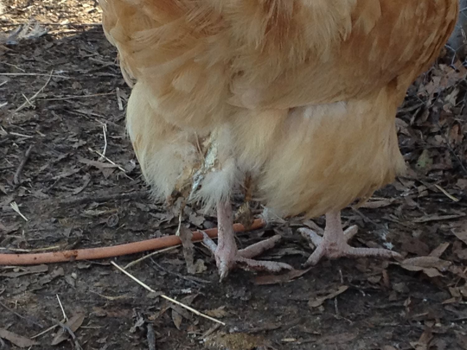 Is my chicken egg bound? I can see the egg contents draining out. She is drinking and eating ok. Just need some good advice on what I should do.