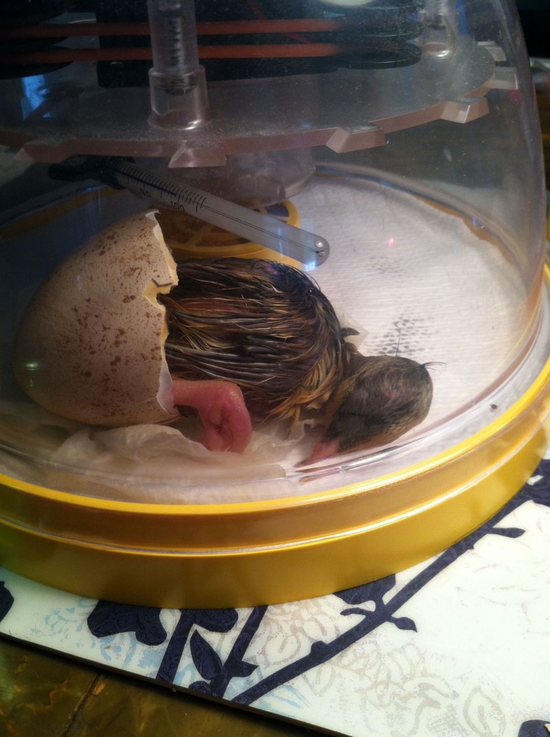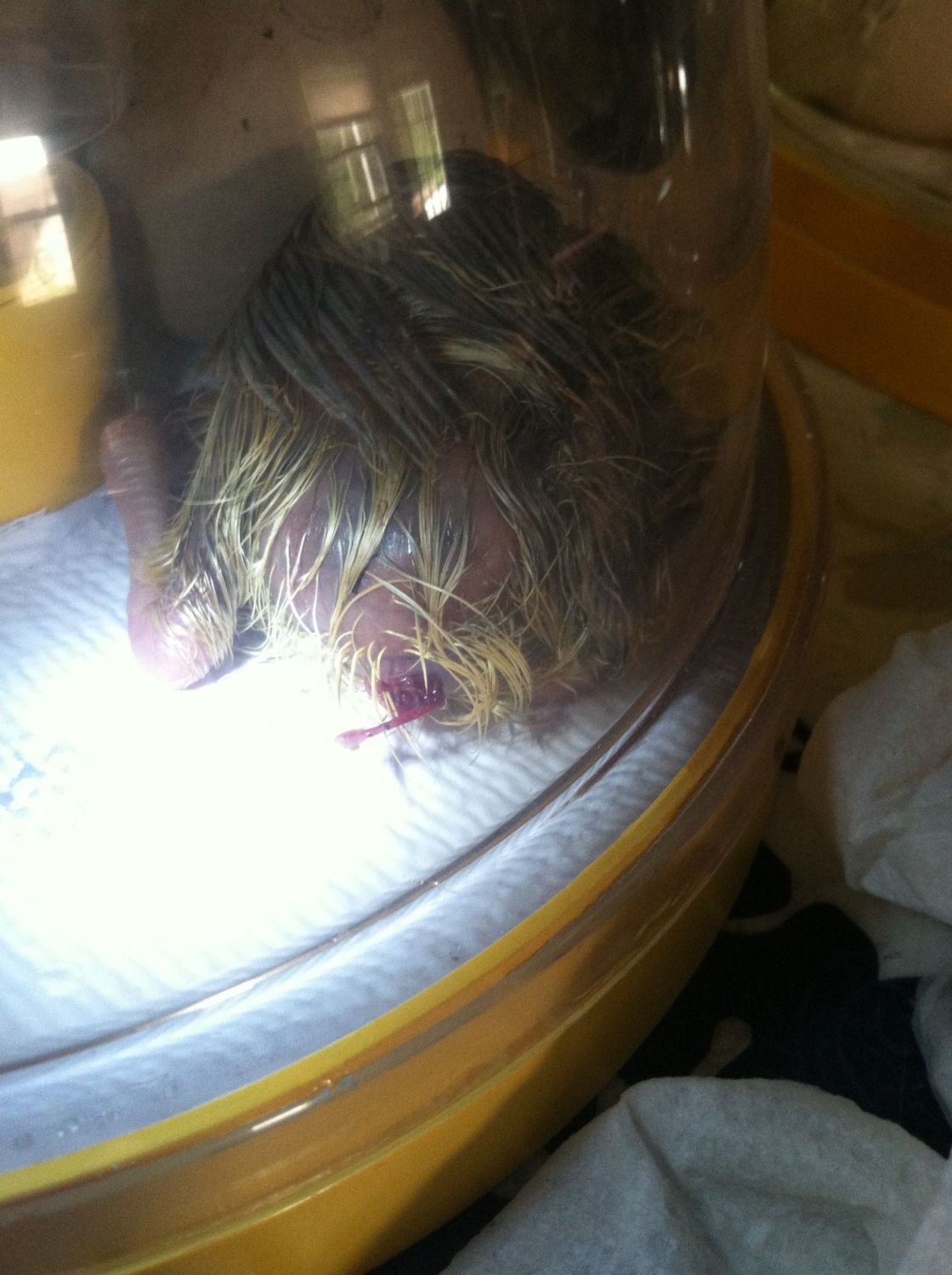 He's out!! No blood. Membrane was tough. Head was between his legs. His feet do look curled up but is that because he just came out??