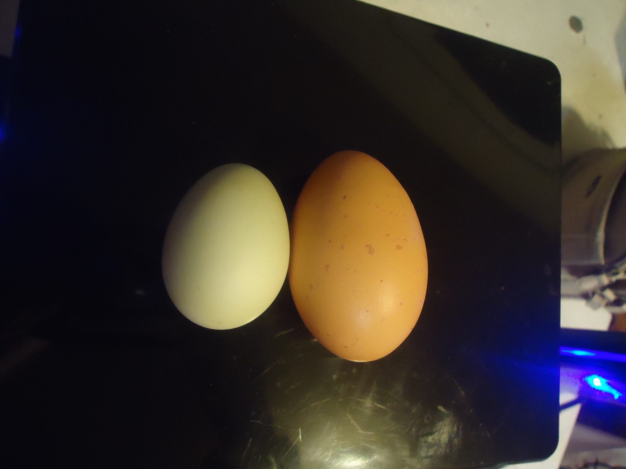 One of my favorite parts of having chickens, the excitement of new layers! I have 8 hens (was 10 darn hawk) only one has been of laying age the rest months younger. Well I am now getting more eggs! My BR started laying over a week ago.Yesterday I found a little dark brown egg, I think it was my RSL Phoebe. Today a little green egg, pretty sure it was my EE Fidgety Gidget.
