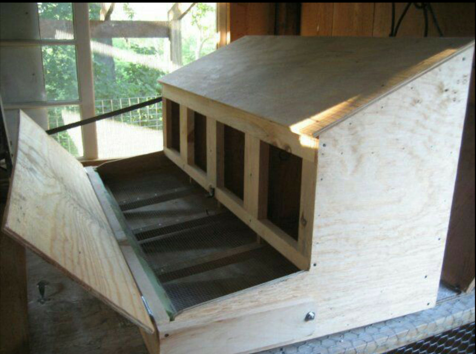 construct a roll out nest box. I haven't found any great designs/plans, if you have a roll out nest box can you post your pictures. So far I have taken what I have seen online and will be tailoring to what I need. I'll post the pictures of the constructions real soon.