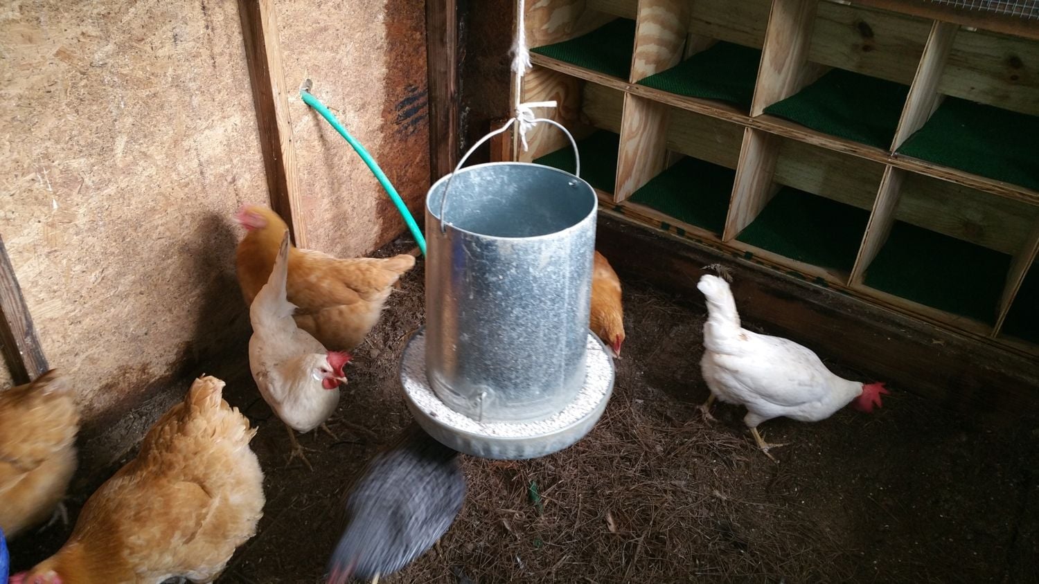 The first setup is obviously for a large production chicken farm with maybe 50 or more chickens. (minimum. ) The second set of pictures is for a small coop with a dozen chickens or so.