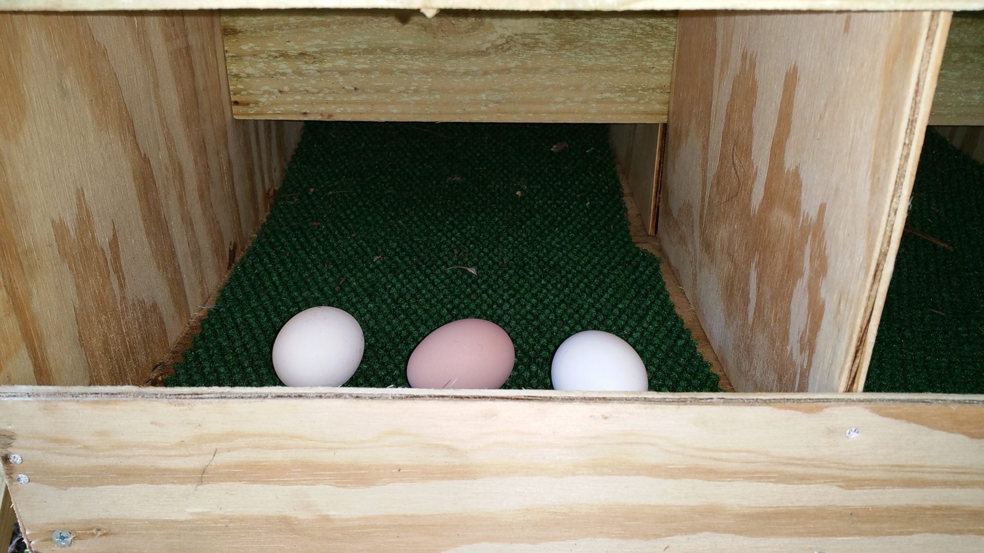 And... we have success. An hour after attaching the boxes we found four eggs (only three pictured, the fourth one was in the box directly on top).