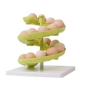 I recently found a plastic spiral egg holder on Amazon.com for $19.99. The brand name is Yixin. It comes from China, but there is no charge for shipping. It arrived in only a few days. It is not as beautiful as the wire ones, but I think it actually works better for me because my chickens lay smallish eggs and I believe they could fall through the track of an Egg Skelter.